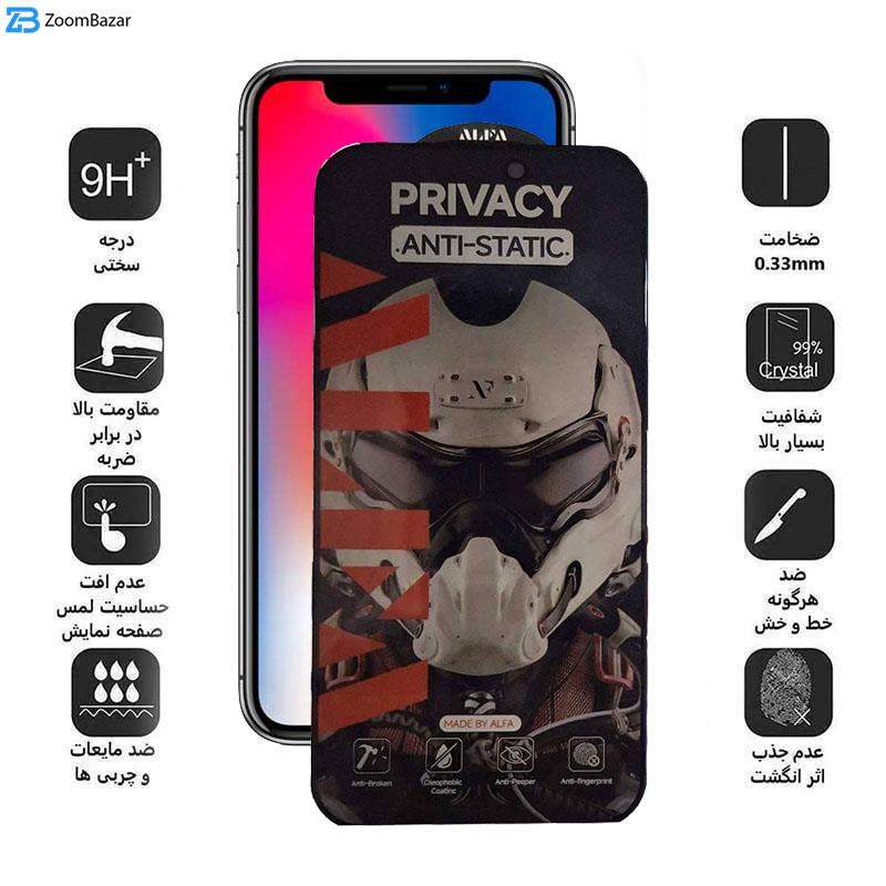 محافظ صفحه نمایش حریم شخصی اپیکوی مدل Alpha مناسب برای گوشی موبایل اپل iPhone 11 Pro / XS / X