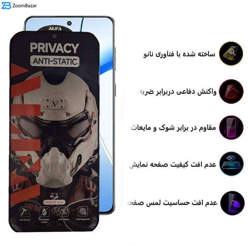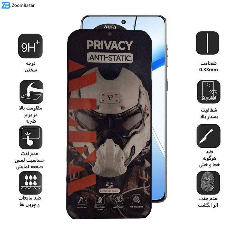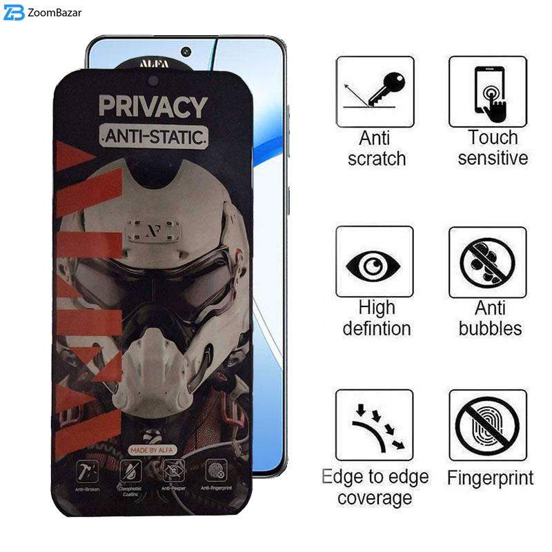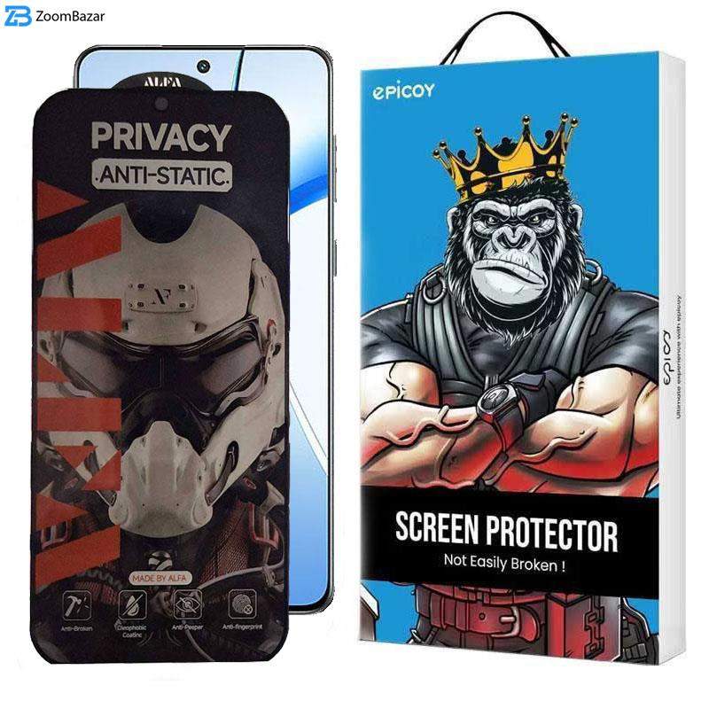 افرادی که به فکر رعایت حریم شخصی خود هستند و دوست ندارند اطلاعات شخصی آنها را کسی نبیند ، می‌توانند از بهترین گزینه لوازم جانبی گوشی‌های هوشمند یعنی گلس پرایوسی استفاده کنند و نه تنها نمایشگر خود را ایمن نگه دارند ، بلکه اجازه مشاهده صفحه را به دیگران نیز ندهند یا نگران به خطر افتادن اطلاعات شخصی خود در مکان‌های عمومی هستید ؟ آیا از دیده شدن صفحه نمایش گوشی توسط افراد کناری خود رنچ می‌برید؟ در این شرایط بهترین راه خرید محافظ صفحه نمایش حریم شخصی اپیکوی مدل Alpha Privacy است.محافظ صفحه نمایش حریم شخصی اپیکوی مدل Alpha Privacy علاوه بر این که از صفحه نمایش گوشی شما مراقبت می‌کند و امکان آسیب به آن را کاهش می‌دهد ، زاویه دید گوشی را محدود کرده و مانع از دیده شدن صفحه نمایش گوشی توسط اطرافیان می‌شود. رد و بدل کردن اطلاعات بانکی و مواردی از این قبیل برخی از کارهایی هستند که شاید در طول روز بارها آن را با گوشی هوشمند خود انجام دهید. از آنجایی که ایمن نگه داشتن این اطلاعات حائز اهمیت است ، خرید گلسی که بتواند حریم شخصی شما را حفظ کند را نباید فراموش کرد.محافظ صفحه نمایش حریم شخصی اپیکوی مدل Alpha Privacy از نظر ظاهر مشابه با گلس‌های معمولی است. اما در این گلس از نوعی تکنولوژی استفاده شده است که با محدود کردن زاویه دید ، افرادی که در کنار شما قرار دارند نمی‌توانند نمایشگر گوشی را ببیند. این محافظ صفحه نمایش حریم شخصی اپیکوی مدل Alpha Privacy مقاومت بالایی دارد.ضد خط و خش است.ضد ضربه است.اثر انگشت بر روی آن باقی نمی‌ماند.نسبت به لمس حساس است؛بنابراین عملکرد گوشی را مختل نمی‌کند.اطلاعات شخصی و حساس شما را امن نگه می‌دارد.زاویه دید محدود دارد.استفاده از فناوری Alpha Privacy باعث شده است که از رو به رو یا به عبارتی زاویه 90 درجه بتوانید صفحه موبایل خود را ببینید؛در غیره این صورت صفحه نمایش گوشی به صورت سیاه و تاریک دیده می‌شود.به آسانی نصب می‌شود و هیچ گونه حبابی زیر آن ایجاد نمی‌شود.محافظ صفحه نمایش حریم شخصی اپیکوی مدل Alpha Privacy دقیق است
