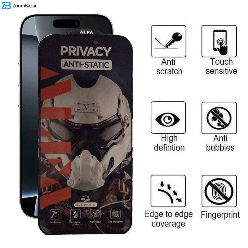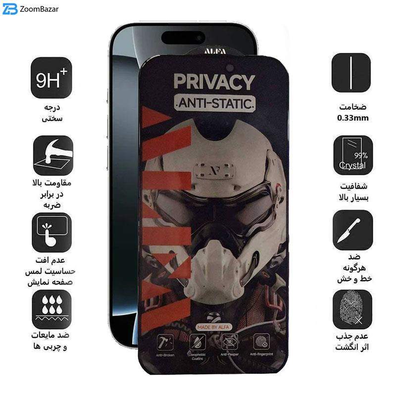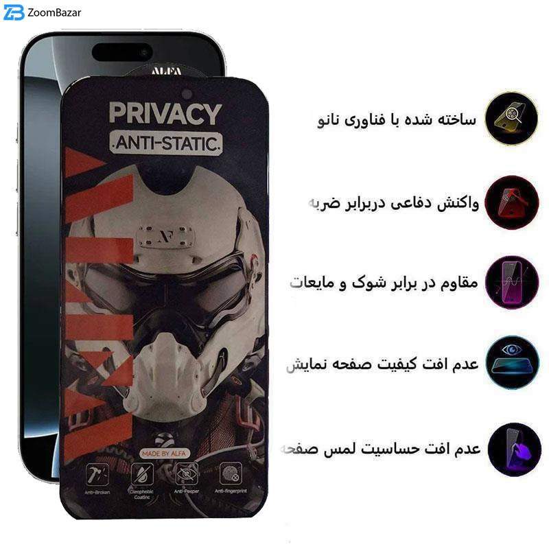 محافظ صفحه نمایش حریم شخصی اپیکوی مدل Alpha مناسب برای گوشی موبایل اپل iPhone 16 Pro Max
