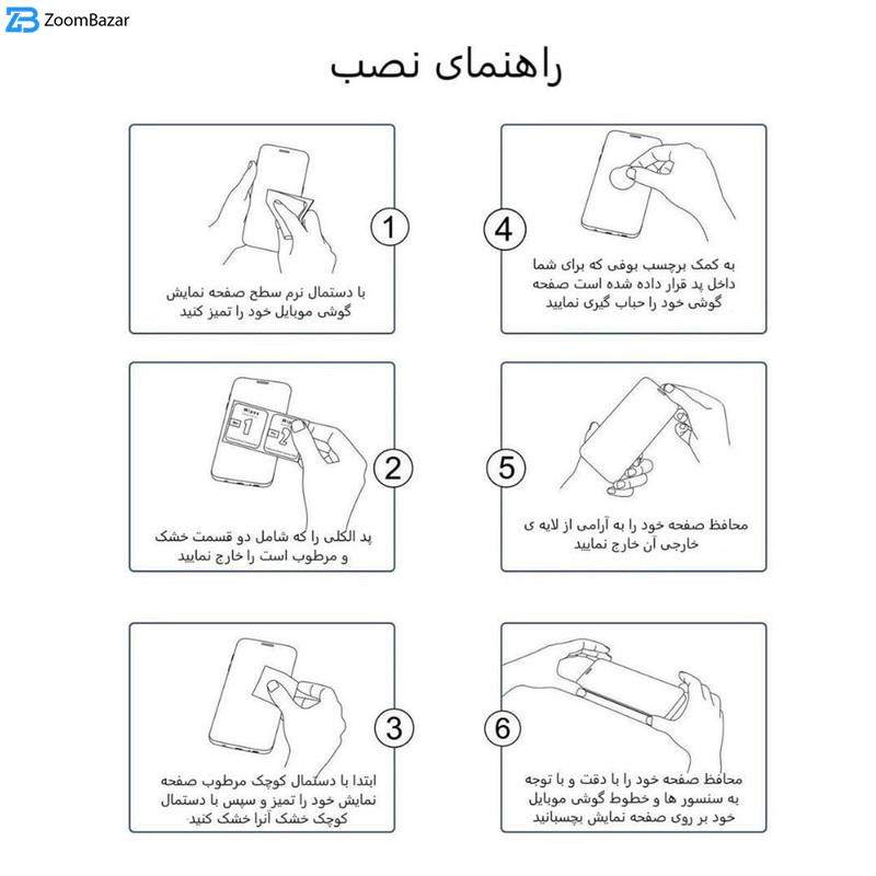 | ویژگیها | 9H، جلوگیری از انعکاس نور، قابلیت نصب آسان، مقاوم در برابر چربی و اثرانگشت، مقاوم در برابر خط و خش، نصب بدون حباب |