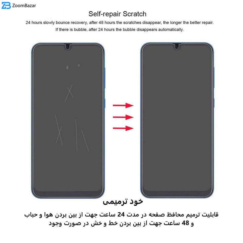 - ویژگیها 9H، جلوگیری از انعکاس نور، قابلیت نصب آسان، مقاوم در برابر چربی و اثرانگشت، مقاوم در برابر خط و خش، نصب بدون حباب
