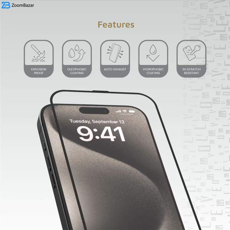 محافظ صفحه نمایش لِولو مدل 3D Resin Glue مناسب برای گوشی موبایل اپل iPhone 16/15/14 Pro