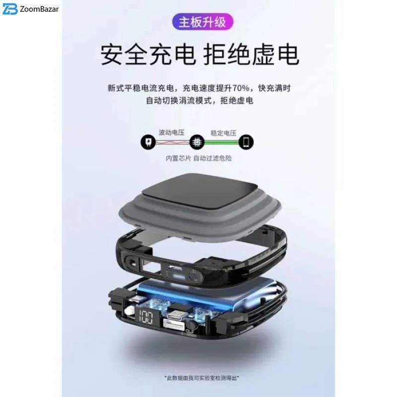 • مشخصات فنی دارای یک چراغ قوه LED باتری 10000 میلی‌آمپر مدت زمان شارژ 7 ساعت دو کابل Type-C و لایتینگ دارای یک چراغ با نور آفتابی یک خروجی USB-A با ولتاژ 5 ولت دارای یک استند کشویی که در زیر آن تعبیه شده صفحه نمایش دیجیتال برای نشان دادن میزان باتری