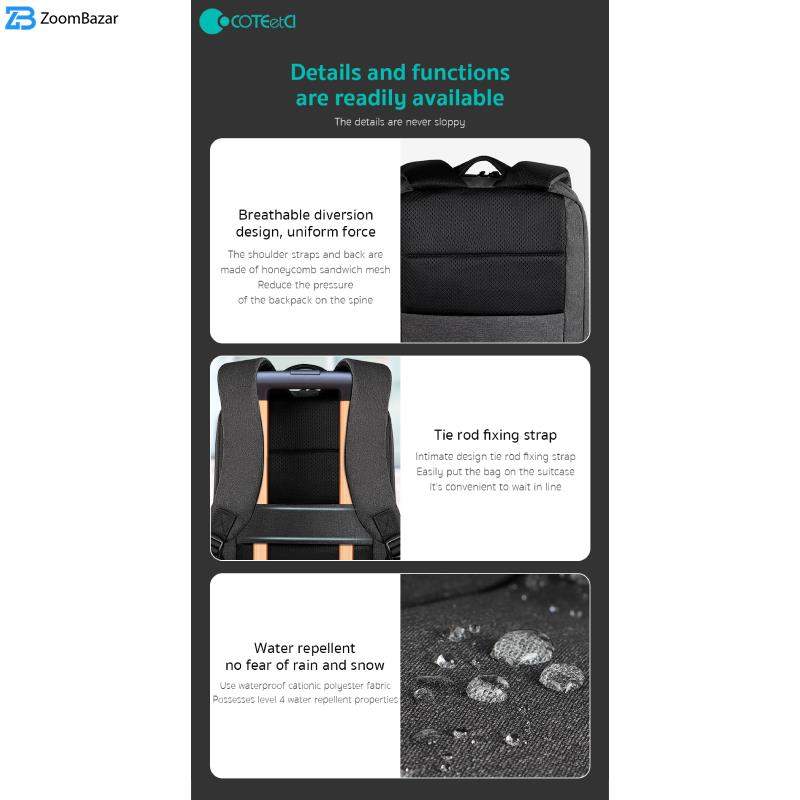 کیف لپتاپ چندمنظوره کوتچی با محفظههای داخلی و جانبی متعدد جهت نگهداری و حمل وسایل ضروری بسیار زیاد با طراحی شیک و منحصر به فرد، نگهداری وسایل مختلف مانند: لپ تاپ تا سایز 16 اینچ، تبلت، نوت بوک، گوشی موبایل، کیف پول، اسناد، مدارک، لوازم جانبی، دفتر، کتاب، پاوربانک و غیره، داخلیترین لایه مقاوم در برابر پارگی، لایه میانی در برابر شوک و لایه خارجی در برابر خط و خش از لپ تاپ محافظت میکند. برخورداری از کیفیت ساخت عالی، ساخته شده از پارچه پلیاستر کاتیونیک ضد آب (Cationic Polyester)، بسیار مقاوم در برابر نفوذ آب به درون کیف، طراحی ارگونومیکی، دارای دو بند اسفنجی بسیار نرم و راحت جهت کم شدن فشار وارد آمده به شانه ها، بدون اذیت کردن شانه ها و کمر مناسب با فرم بدن، مجهز به پشتی طبی خاص با قابلیت گردش هوا در داخل آن برای جلوگیری از تعریق، دارای بندهای قابل تنظیم و یک بند کوتاه در بالای کوله برای حمل دستی، ابعاد 300x140x420 میلیمتر، وزن 740 گرم، قابلیت نگهداری کاملا ایمن لپتاپ تا سایز 16 اینچی، سفر با لپ تاپ هرگز راحت و بیخطر نبوده، بنابراین در انتخاب یک کوله پشتی باید نهایت دقت را انجام دهید؛ کوله پشتی کوتچی تمامی معیارهای محافظت از لپ تاپ را داشته و یک انتخاب عالی برای محافظت از تجهیزات الکترونیکی و لپ تاپ است.