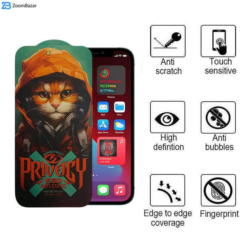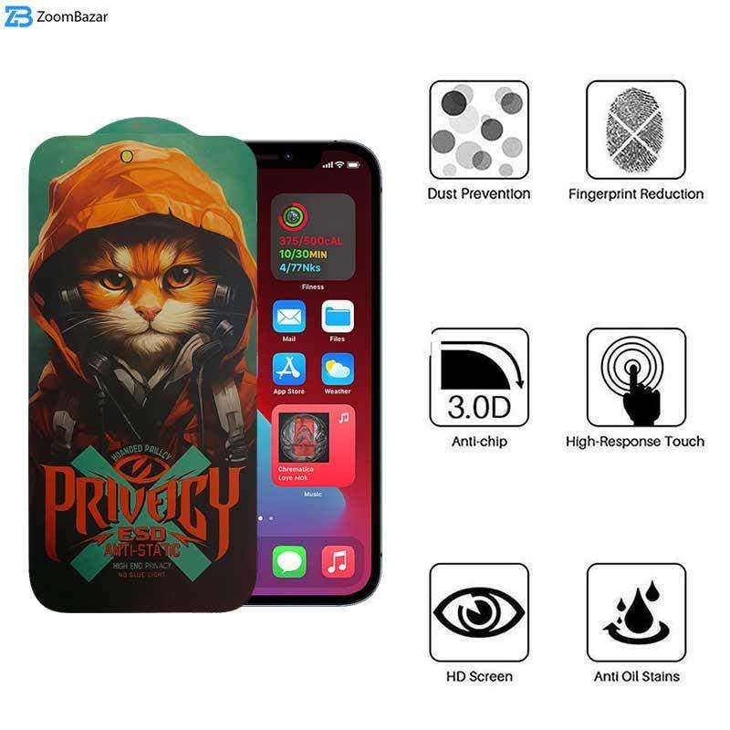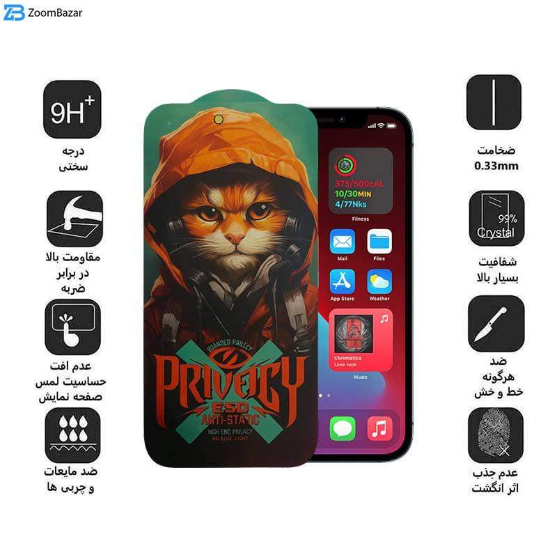 محافظ صفحه نمایش حریم شخصی اپیکوی مدل Privacy Hoodie Cat مناسب برای گوشی موبایل اپل iPhone 12 Pro Max