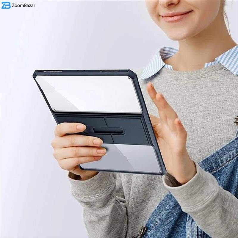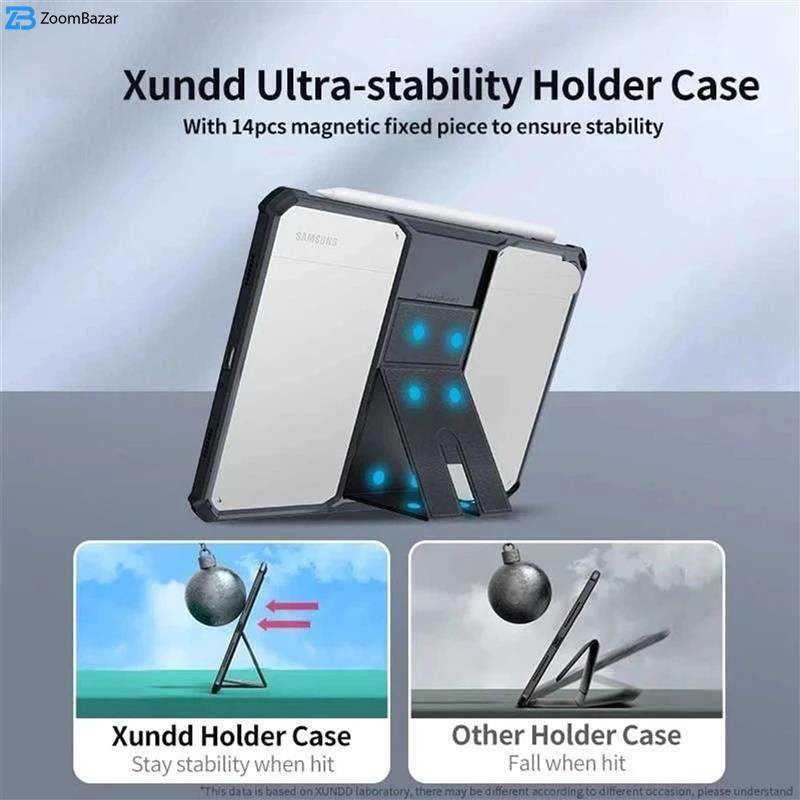 محافظت همیشگی از دستگاه های دیجیتال بخشی جدایی ناپذیر از نگه داری آنهاست که آیپد شما هم از این قاعده مستثناء نیست ، کاور ها باید ضمن حفظ زیبایی آیپد، از آن در برابر خطراتی مانند شوک و ضربه و به خصوص سقوط حفظ کنند. اگر کاوری باشد که طراحی منحصر به فرد آن ترکیبی از زیبایی کاور و خودِ آیپد را نمایان کند و همچنین محافظت ویژه ای از گوشه های آیپد کند قطعا بهترین انتخاب ما خواهد بود. کاور اپیکوی مدل Xundd Stand Holder همان کاوری است که تمامی این نیاز ها را برطرف میکند. در قسمت پشت قاب یک استند با کیفیت ساخته و طراحی شده است تا ضمن محافظت بیشتر بتوانید آن را باز کنید و روی میز کار یا برای طراحی و یا تماشای فیلم از آن استفاده کنید و در زاویه دلخواه آن را قرار دهید. این قاب ساخته شده از بهترین متریال اولیه یعنی PC کاملا شفاف و فشرده و در عین حال انعطاف پذیر است و همچنین TPU که به دلیل خواص نرمی و محافظت بالا در برابر ضربه این کاور را به یک کاور بی نظیر تبدیل میکند. همچنین خاصیت مقاومت بالا در برابر ضربه و خط و خش نیز به جذابیت آن می افزاید. در قسمت های کناری از TPU به شکلی عالی استفاده شده و برش های بسیار دقیق دیده میشود. این برش های دقیق دسترسی به درگاه ها را آسان کرده و قرار گیری دستگاه داخل کاور به بهترین شکل انجام میشود. انعطاف پذیری و نرمی آن ضربه را از دستگاه دور میکند و به آن انتقال نمیدهد بخصوص با توجه به وزن آیپد ها که سقوطشان با شدت بیشتری انجام میشود. همچنین راحتی را در هنگام در دست داشتن آیپد در ساعات طولانی استفاده هدیه میکند. نکته بسیار قابل توجه در خصوص کاور اپیکوی مدل Xundd Stand Holder وجود بامپر هایی است که در 4 گوشه کاور آیپد به شکل برآمده و نرم قرار داده شده اند تا گوشی همراه شما در برابر سقوط آسیب ناپذیر شود. لبه های برجسته کاور کمک میکنند حتی در صورت عدم وجود گلس روی صفحه نمایش از تماس آن با سطح صاف جلوگیری میشود. البته که به شکلی استاندارد طراحی شده و گلس شمارا در صورت استاندارد بودن آن بلند نمیکند. اپیکوی محافظت از لنز دوربین آیپد شما را فراموش نکرده است، پوششی کامل برای لنز دوربین در نظر گرفته شده است، لنز ها به درستی جای خود قرار میگیرند و لبه به شکلی دقیق 0.8 میلی متر بر آمده شده و حفاظت را از دستگاه شما را تکمیل میکنند.