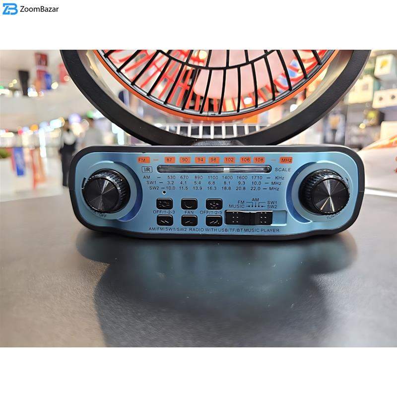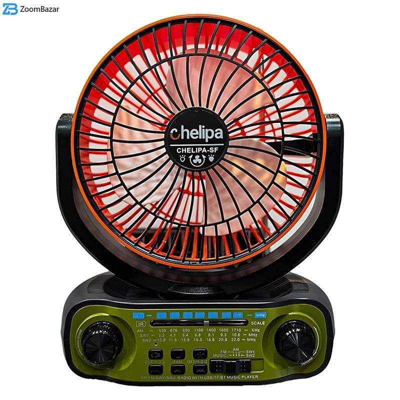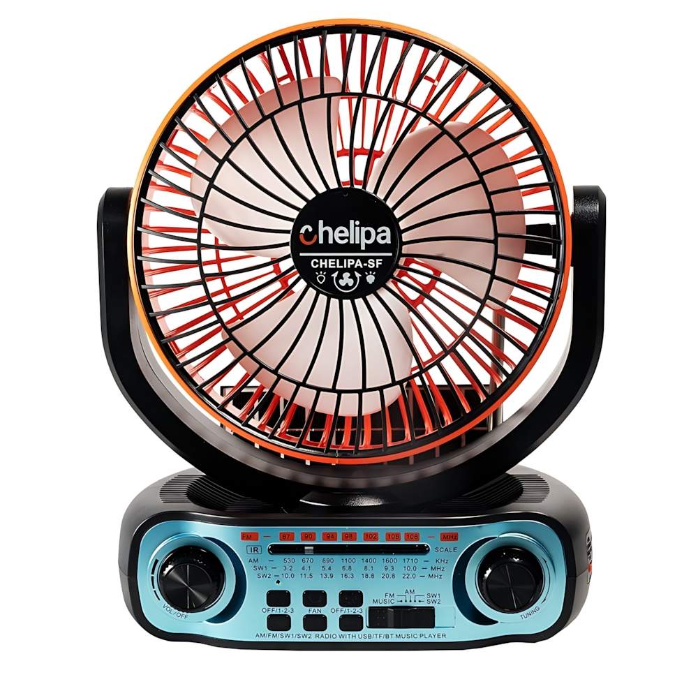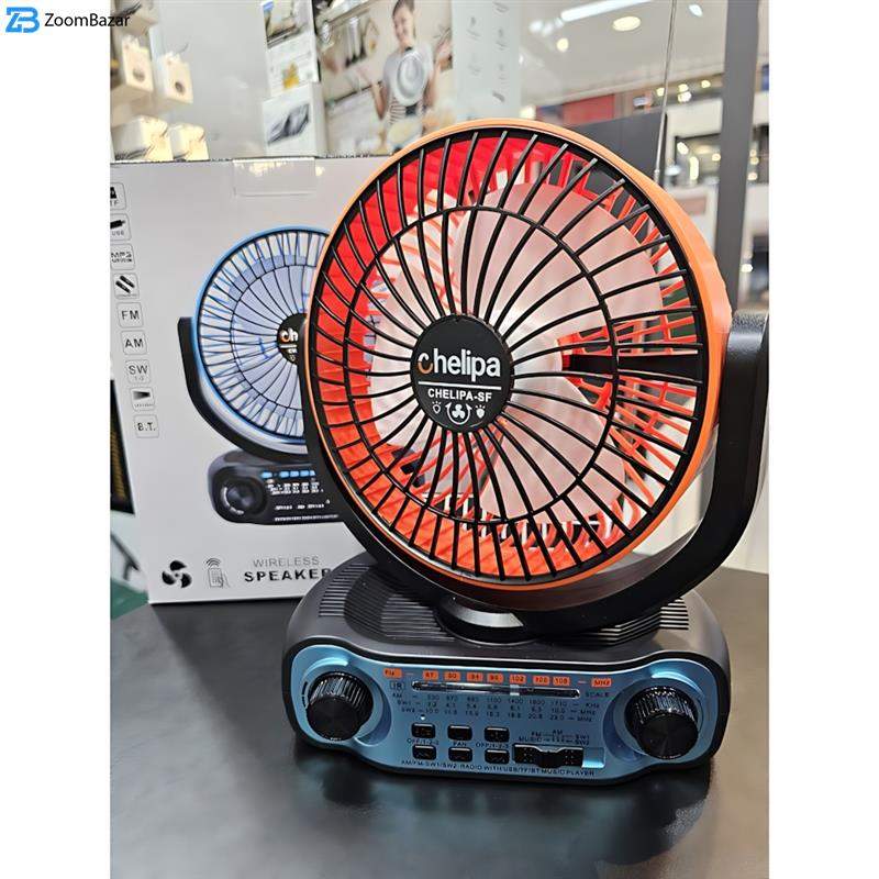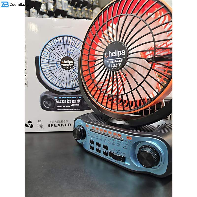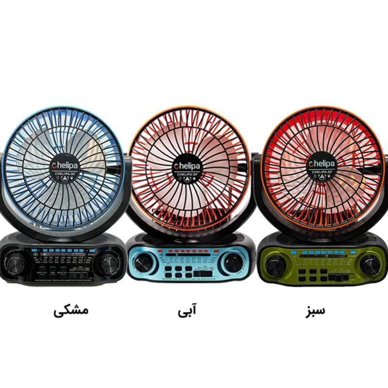 | سایر مشخصات | فن اسپیکر اورجینال چلیپا، واردات انحصاری تیم تکنیک تل، پنکه رومیزی قابلچرخش با طراحی جمعوجور، اسپیکر بلوتوث با نسخه 5.3 + پشتیبانی از رم، فلش و AUX، رادیو با پوشش کامل موجهای AM / FM / SW1 / SW2، پاور بانک داخلی با ظرفیت 4000 میلیآمپر (شارژ از طریق خورشید و تایپ C)، چراغ LED پشت دستگاه با ۳ سطح نوردهی، دارای ریموت کنترل، قابلیت آویزان کردن برای استفاده در کمپ و سفر، ایدهآل برای طبیعتگردی، سفر، خانه و محل کار |