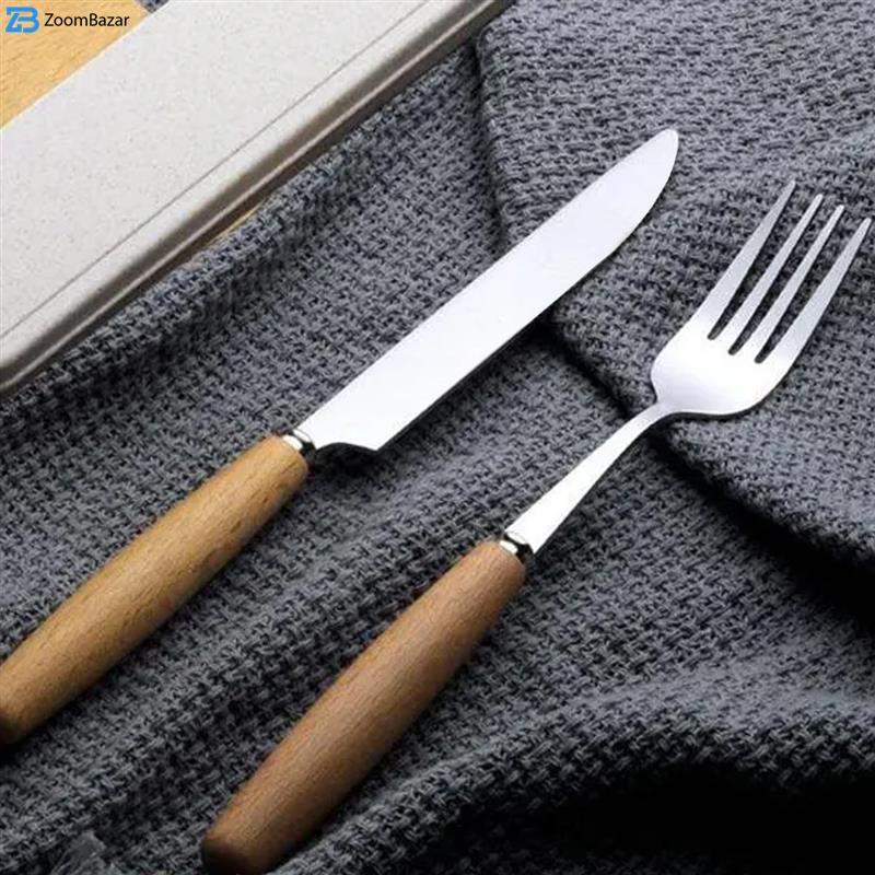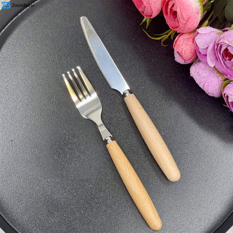 ست کارد و چنگال میوهخوری 12 پارچه مدل دسته چوبی