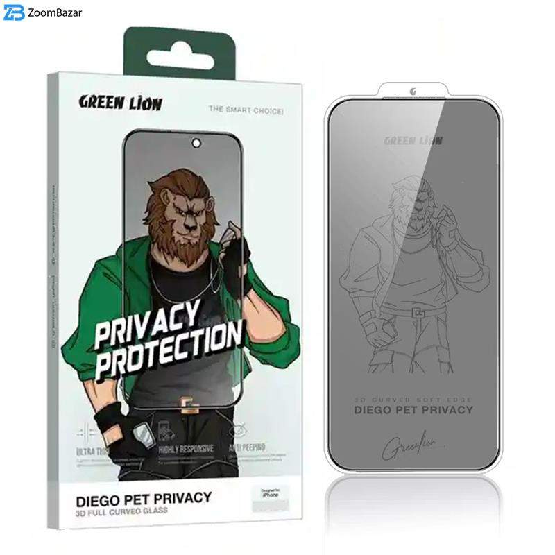محافظ صفحه نمایش حریم شخصی گرین لاین مدل Diego Pet Privacy مناسب برای گوشی موبایل اپل iPhone 16/15/14 Pro