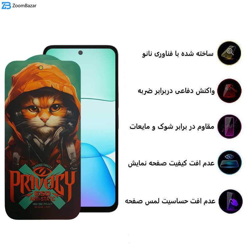 محافظ صفحه نمایش حریم شخصی اپیکوی مدل Hoodie Cat مناسب برای گوشی موبایل شیائومی Redmi 13 5G/ 13 4G / 12 4G / Poco M6 4G/ Redmi Note 13R