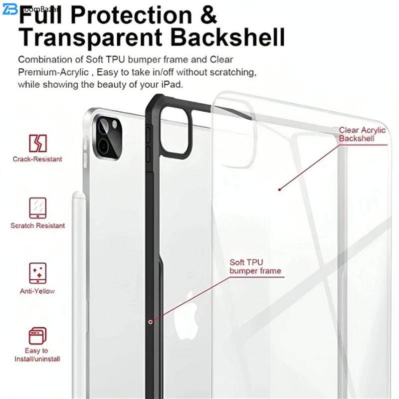 محافظت همیشگی از دستگاه های دیجیتال بخشی جدایی ناپذیر از نگه داری آنهاست که آیپد شما هم از این قاعده مستثناء نیست ، کاور ها باید ضمن حفظ زیبایی آیپد، از آن در برابر خطراتی مانند شوک و ضربه و به خصوص سقوط حفظ کنند. طبق تحقیقات میزان آسیب وارد شده از گوشه های آیپد ها بسیار زیاد است و اکثرا برخورد در گوشه های آیپد بیشتر است. اکثر ما دوست داریم ظاهر خودِ آیپد نیز درون کاور جلوه کند. در مجموع اگر کاوری باشد که طراحی منحصر به فرد آن ترکیبی از زیبایی کاور و خودِ آیپد را نمایان کند و همچنین محافظت ویژه ای از گوشه های آیپد کند قطعا بهترین انتخاب ما خواهد بود. کاور ژاند مدل Beatle همان کاوری است که تمامی این نیاز ها را برطرف میکند. ساخته شده از بهترین متریال اولیه یعنی PC شفاف و فشرده و در عین حال انعطاف پذیر و همچنین TPU که به دلیل خواص نرمی و محافظت بالا در برابر ضربه این کاور را به یک کاور بی نظیر تبدیل میکند. برای شفافیت و نمایش زیبایی آیپد از PC به شکل کریستال و کاملا شفاف در قسمت پشتی کاور استفاده شده است. همچنین خاصیت مقاومت بالا در برابر ضربه و خط و خش نیز به جذابیت آن می افزاید. در قسمت های کناری از TPU به شکلی عالی استفاده شده و برش های بسیار دقیق دیده میشود. این برش های دقیق دسترسی به درگاه ها را آسان کرده و قرار گیری دستگاه داخل کاور به بهترین شکل انجام میشود. انعطاف پذیری و نرمی آن ضربه را از دستگاه دور میکند و به آن انتقال نمیدهد. همچنین راحتی را در هنگام در دست داشتن آیپد در ساعات طولانی استفاده هدیه میکند. نکته بسیار قابل توجه در خصوص کاور ژاند مدل Beatle وجود بامپرهایی است که در 4 گوشه کاور آیپد به شکل برآمده و نرم قرار داده شده اند تا تبلت شما در برابر سقوط آسیب ناپذیر شود. لبه های برجسته کاور کمک میکنند حتی در صورت عدم وجود گلس روی صفحه نمایش از تماس آن با سطح صاف جلوگیری میشود. البته که به شکلی استاندارد طراحی شده و گلس شما را در صورت استاندارد بودن آن بلند نمیکند. ژاند محافظت از لنز دوربین آیپد شما را فراموش نکرده است، پوششی کامل برای لنز دوربین در نظر گرفته شده است، لنز ها به درستی جای خود قرار میگیرند و لبه به شکلی دقیق 0.8 میلی متر بر آمده شده و حفاظت را از دستگاه شما را تکمیل میکنند.