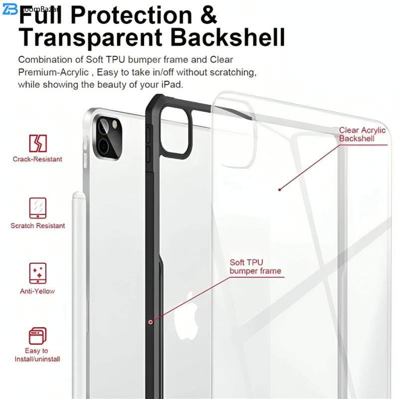 محافظت همیشگی از دستگاه های دیجیتال بخشی جدایی ناپذیر از نگه داری آنهاست که آیپد شما هم از این قاعده مستثناء نیست ، کاور ها باید ضمن حفظ زیبایی آیپد، از آن در برابر خطراتی مانند شوک و ضربه و به خصوص سقوط حفظ کنند. طبق تحقیقات میزان آسیب وارد شده از گوشه های آیپد ها بسیار زیاد است و اکثرا برخورد در گوشه های آیپد بیشتر است. اکثر ما دوست داریم ظاهر خودِ آیپد نیز درون کاور جلوه کند. در مجموع اگر کاوری باشد که طراحی منحصر به فرد آن ترکیبی از زیبایی کاور و خودِ آیپد را نمایان کند و همچنین محافظت ویژه ای از گوشه های آیپد کند قطعا بهترین انتخاب ما خواهد بود. کاور ژاند مدل Xundd Beatle همان کاوری است که تمامی این نیاز ها را برطرف میکند. ساخته شده از بهترین متریال اولیه یعنی PC شفاف و فشرده و در عین حال انعطاف پذیر و همچنین TPU که به دلیل خواص نرمی و محافظت بالا در برابر ضربه این کاور را به یک کاور بی نظیر تبدیل میکند. برای شفافیت و نمایش زیبایی آیپد از PC به شکل کریستال و کاملا شفاف در قسمت پشتی کاور استفاده شده است. همچنین خاصیت مقاومت بالا در برابر ضربه و خط و خش نیز به جذابیت آن می افزاید. در قسمت های کناری از TPU به شکلی عالی استفاده شده و برش های بسیار دقیق دیده میشود. این برش های دقیق دسترسی به درگاه ها را آسان کرده و قرار گیری دستگاه داخل کاور به بهترین شکل انجام میشود. انعطاف پذیری و نرمی آن ضربه را از دستگاه دور میکند و به آن انتقال نمیدهد. همچنین راحتی را در هنگام در دست داشتن آیپد در ساعات طولانی استفاده هدیه میکند. نکته بسیار قابل توجه در خصوص کاور ژاند مدل Xundd Beatle وجود بامپر هایی است که در 4 گوشه کاور آیپد به شکل برآمده و نرم قرار داده شده اند تا گوشی همراه شما در برابر سقوط آسیب ناپذیر شود. لبه های برجسته کاور کمک میکنند حتی در صورت عدم وجود گلس روی صفحه نمایش از تماس آن با سطح صاف جلوگیری میشود. البته که به شکلی استاندارد طراحی شده و گلس شما را در صورت استاندارد بودن آن بلند نمیکند. گروه تکنیک تل محافظت از لنز دوربین آیپد شما را فراموش نکرده است، پوششی کامل برای لنز دوربین در نظر گرفته شده است، لنز ها به درستی جای خود قرار میگیرند و لبه به شکلی دقیق 0.8 میلی متر بر آمده شده و حفاظت را از دستگاه شما را تکمیل میکنند.