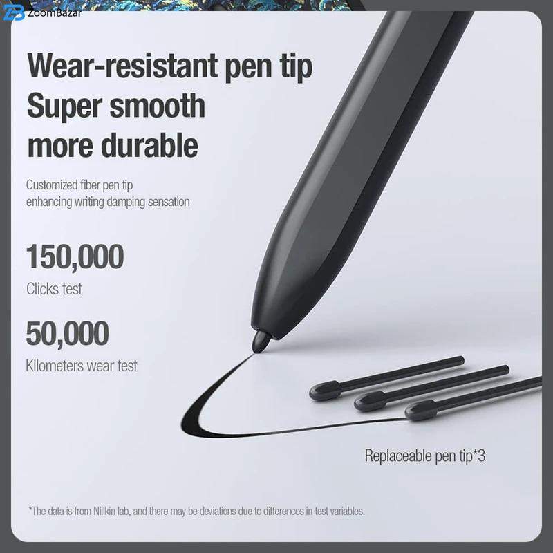 قلم لمسی iSketch S3 for SAM از برند نیلکین به طور ویژه برای تبلت‌های سامسونگ طراحی شده است. این قلم با بهره‌گیری از فناوری القای الکترومغناطیسی کار می‌کند، به همین دلیل بدون نیاز به باتری یا شارژ، امکان طراحی و نوشتن را فراهم می‌سازد. این ویژگی، آن را از دیگر قلم‌های لمسی، به‌ویژه مدل‌های مخصوص آیپد، متمایز می‌کند. قلم iSketch S3 به قابلیت تشخیص ۴۰۹۶ سطح فشار مجهز است که امکان ترسیم خطوط با ضخامت‌های مختلف و کنترل دقیق‌تر را فراهم می‌کند. نوک این قلم که تنها ۰.۵ میلی‌متر قطر دارد، برای ترسیم خطوط ظریف طراحی شده و قابل تعویض است. همچنین، مقاومت بالای نوک در برابر سایش، این قلم را برای استفاده‌های طولانی‌مدت مناسب می‌کند. ویژگی‌های برجسته این قلم شامل کنترل دقیق خطوط با توجه به فشار و زاویه قلم، عملکرد بدون باتری، پشتیبانی از سری تبلت‌های Samsung Galaxy Tab S و دکمه فرمان سریع برای دسترسی سریع به منوها یا اجرای دستورات خاص است.