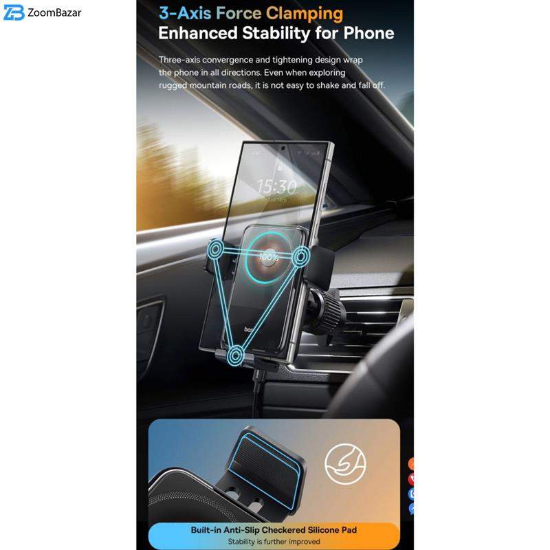 پایه نگهدارنده وایراس Baseus Wisdom Pro محصولی پیشرفته است که برای خودروها طراحی شده و به بهبود تجربه استفاده از دستگاههای تلفن همراه در حین حرکت کمک میکند. این محصول به طور کامل قابلیت نگهداری ایمن و شارژ بیسیم راحت را با هم ترکیب میکند و ایمنی و راحتی بهینه را فراهم میکند.پایه نگهدارنده و شارژر بی سیم Baseus Wisdom Pro یک وسیله جانبی ضروری برای کسانی است که اغلب هنگام رانندگی از تلفن خود استفاده میکنند. این محصول با شارژ سریع، طراحی هوشمند و سازگاری بالا، راحتی و ایمنی را برای هر سفری به ارمغان میآورد.