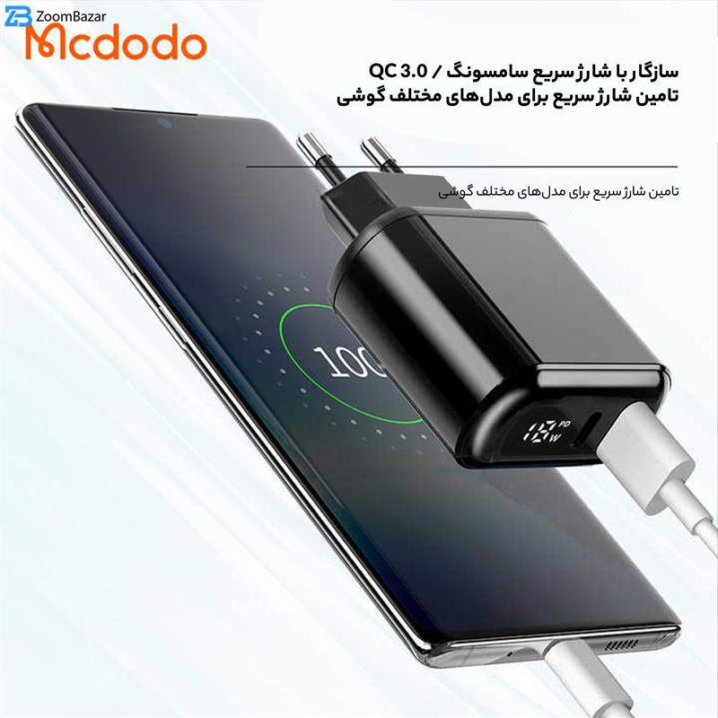 منابع تغذیه و انتقال داده استفاده می‌شود.با توجه به این ویژگی‌ها، آداپتور دو پورت 20 وات همراه با کابل دو سر تایپ سی مک دودو
