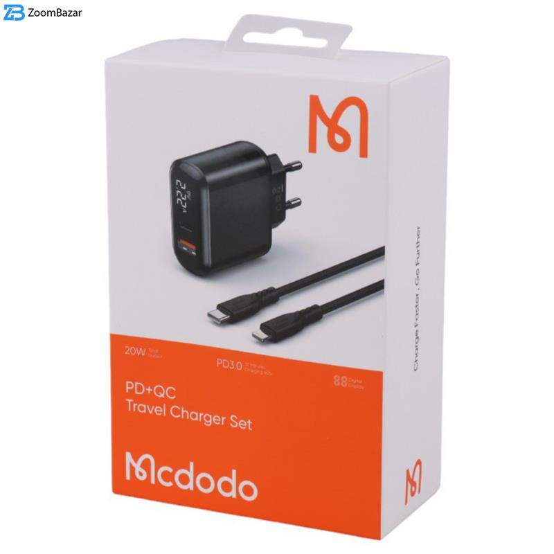 آداپتور دو پورت 20 وات همراه با کابل دو سر تایپ سی مک دودو LCH-7172 یکی از جدیدترین و پرکاربردترین محصولات در دنیای شارژرها و