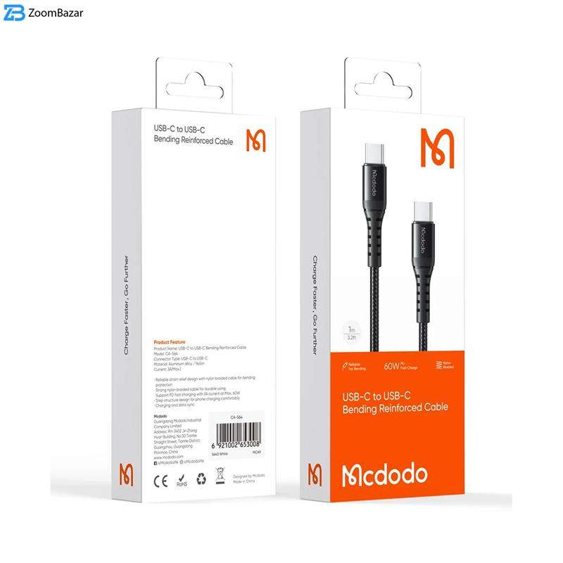کابل Type C به Type C مک دودو Mcdodo CA-564 دارای طول یک متر و حداکثر شدت جریان 3 آمپر …