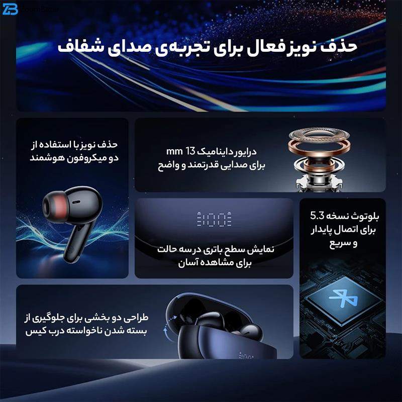 | سایر مشخصات | -دارای نمایشگر دیجیتال جهت نمایش درصد شارژ باتری کیس و همچنین میزان باتری گوش چپ و راست |