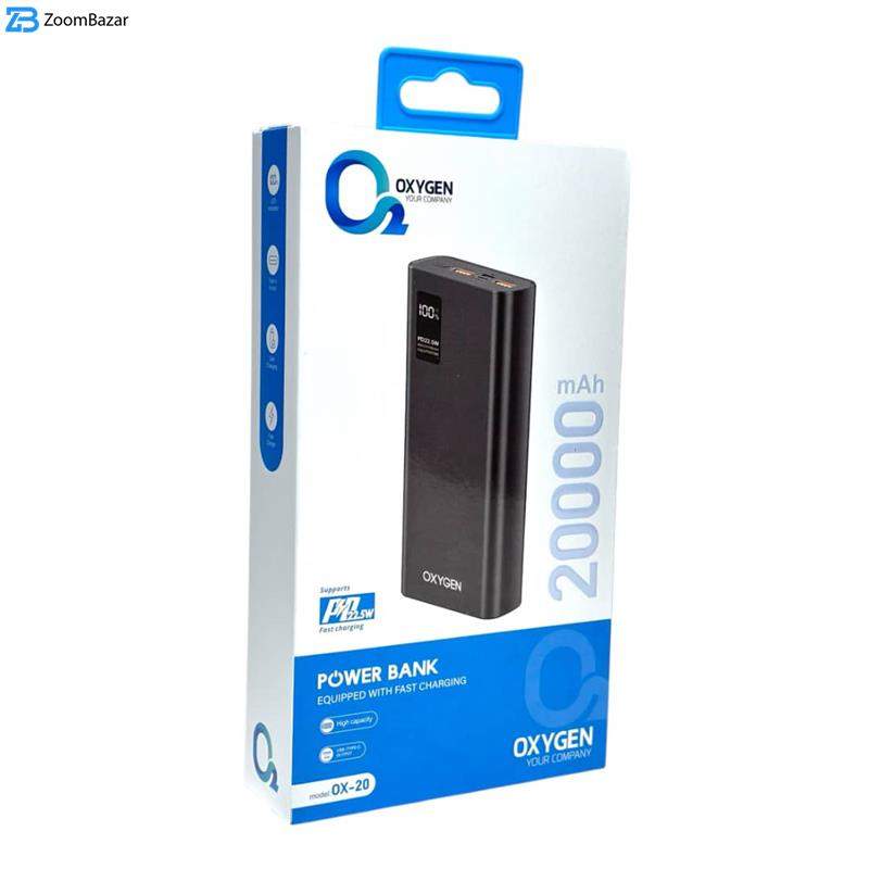 پاوربانک اکسیژن مدل OX-20 ظرفیت 20000 میلی آمپر ساعت