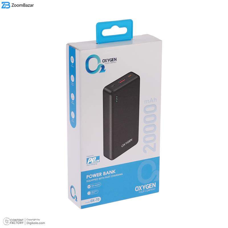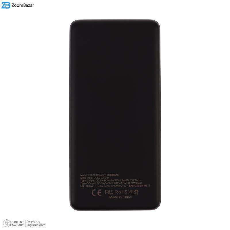 پاوربانک 22.5 وات اکسیژن مدل OX-70 ظرفیت 20000 میلی‌آمپر ساعت