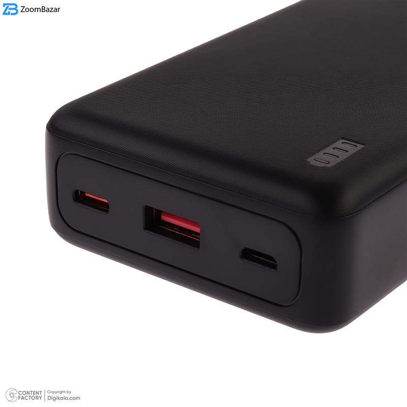 • مشخصات فنی دارای یک پورت Micro USB ورودی با مشخصات 5 ولت 2 آمپر برای شارژ پاوربانک / دارای یک پورت USB-C مشترک برای ورودی خروجی با مشخصات 5V 3A و 9V 2A و 12V 1.5A / دارای یک پورت خروجی USB با مشخصات 4.5V 5A و 5V 3A و 9V 2A و 12V 1.65A / توان پاوربانک تا 22.5 وات