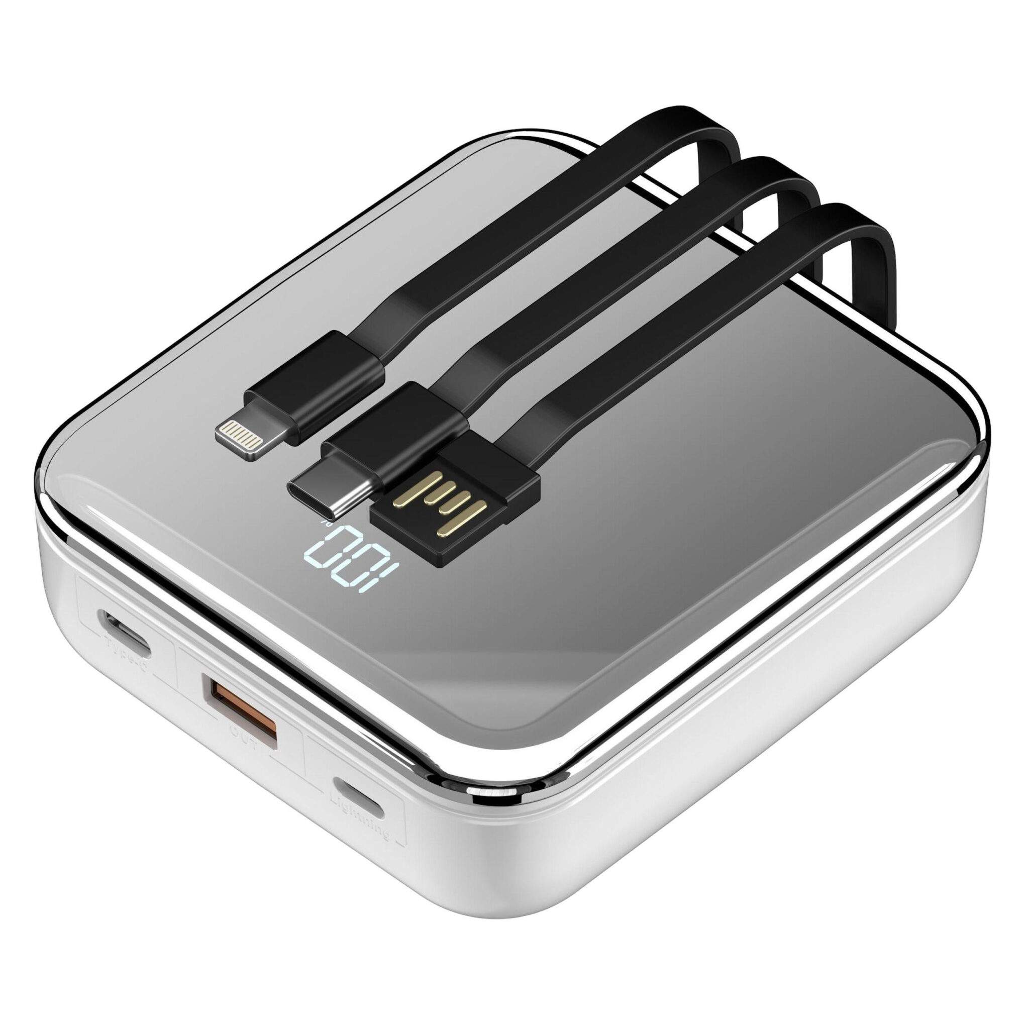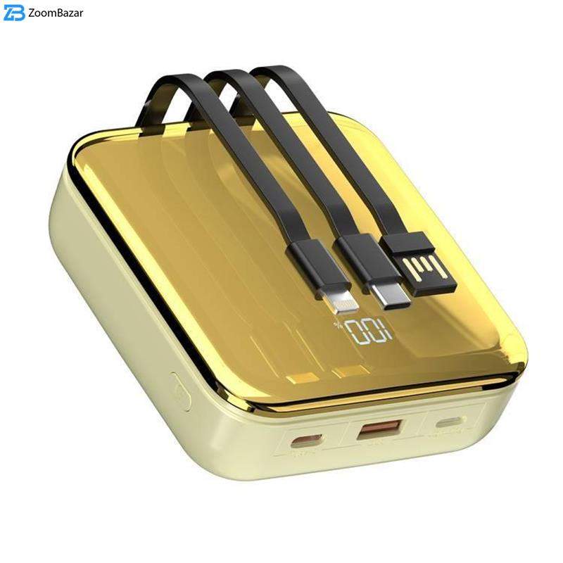 پاوربانک 20000mAh پرودو مدل PBFCH032 ، مجهز به یک باتری 20000 میلی آمپری است و در طراحی آن سه کابل شارژ متصل ، طراحی شده است . بدین ترتیب شما نگرانی بابت جا گذاشتن کابل شارژ را نخواهید داشت و همچنین امکان شارژ همزمان چند دستگاه را خواهید داشت .از ویژگی های PBFCH032 می توان به ظرفیت باتری: 20000 میلیآمپرساعت با ورودی/خروجی USB-C: 5V/3A، 9V/2.2A، 12V/1.66A (PD20W) و ورودی لایتنینگ:5V/2A، 9V/2A (18W)-خروجی USB-A:5V/4.5A، 5V/3A، 9V/2.2A، 12V/1.66A (22.5W) در کنار کابلهای متصل :خروجی USB-C:5V/4.5A، 5V/3A، 9V/2.2A، 12V/1.66A (22.5W)-خروجی لایتنینگ:5V/2.4A (12W)ورودی USB-A:5V/2.4A (12W) اشاره کرد . یک خوشتیپ همه کاره برای استفاده روزانه شما