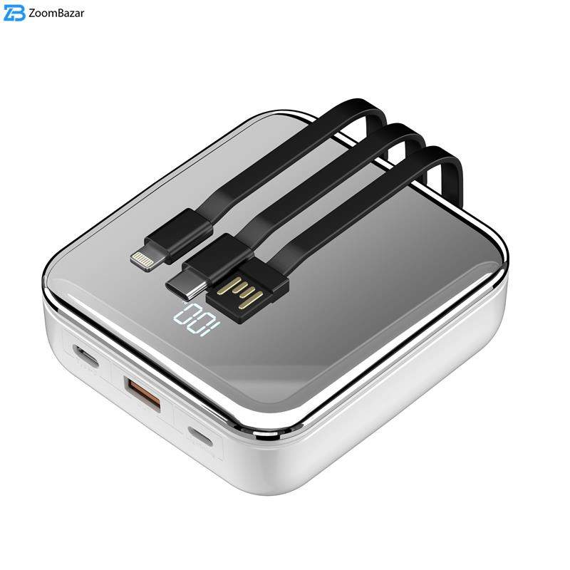 - مشخصات فنی ظرفیت باتری: 20000 میلیآمپرساعت ورودی/خروجی USB-C: 5V/3A، 9V/2.2A، 12V/1.66A (PD20W) ورودی لایتنینگ: 5V/2A، 9V/2A (18W) خروجی USB-A: 5V/4.5A، 5V/3A، 9V/2.2A، 12V/1.66A (22.5W) کابلهای متصل : خروجی USB-C: 5V/4.5A، 5V/3A، 9V/2.2A، 12V/1.66A (22.5W) خروجی لایتنینگ: 5V/2.4A (12W) ورودی USB-A: 5V/2.4A (12W)