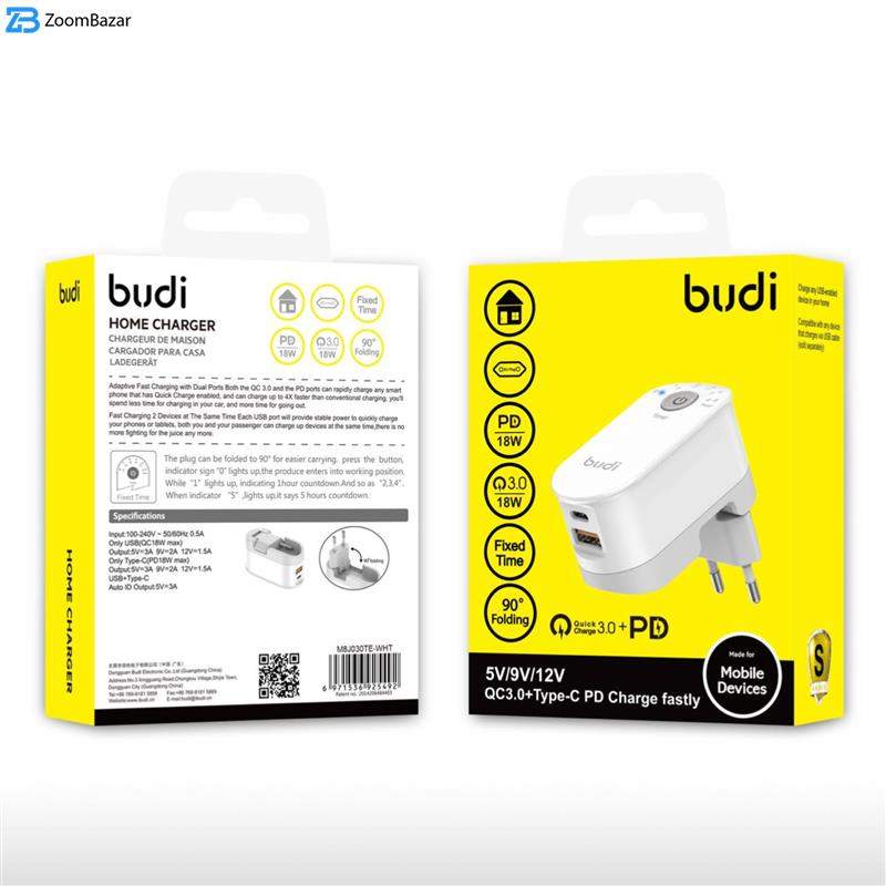 شارژر دیواری BUDI M8J030TE با سرعت فوق العاده از برند Budi با یک عدد شارژ سریع Qualcomm Quick Charge 3 0 و 1 Type C USB Power Delivery PD از فروشگاه آنلاین ما در ایران با بهترین قیمت در دسترس است. این شارژر سریع با ولتاژ بیش از حد و حفاظت از اتصال کوتاه PD Type C ارائه می کند. این محصول دارای تایمر برای قطع شارژ است.