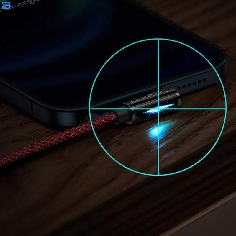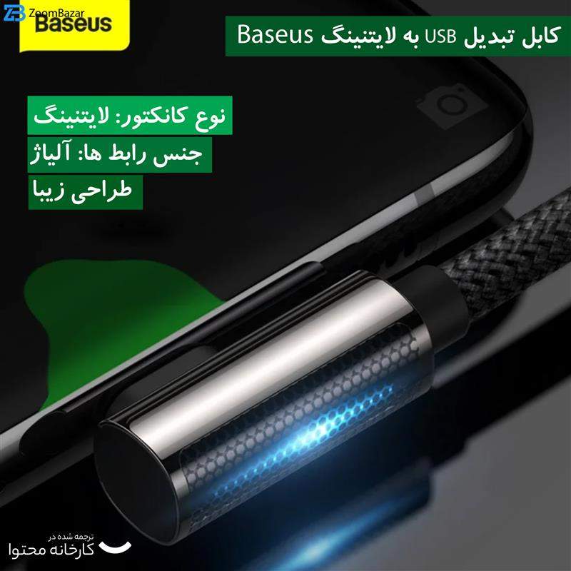 اگر زیاد با گوشی در حال شارژ کار می‌کنید، کابل‌ شارژتان زود به زود خراب میشود چرا که بدنه کانکتور مدام به دست شما برخورد می‌کند و درنهایت کابل در آن نقطه پاره می شود. کابل شارژ آیفونی بیسوس مدل CACS000109 یک کابل 2 متری بلند با کانکتور خمیده یا Elbow است. این کابل‌ها به کابل گیمینگ معروفند و شما می توانید در حین شارژ بدون مزاحمت کابل شارژ، از گوشی خود استفاده کنید. این کابل از یک طرف دارای کانکتور لایتنینگ (آیفون) و از سمت دیگر دارای کانکتور USB است. کانکتور لایتنینگ آن به صورت 90 درجه نسبت به کابل طراحی شده و برای استفاده گوشی به حالت افقی بسیار مناسب است. کانکتور خمیده دارای ارتفاع 0.8 سانتی متر و طول 2.15 سانتی متر است تا به شکل مطلوبی به بدنه گوشی بچسبد و دست و پا گیر نباشد.