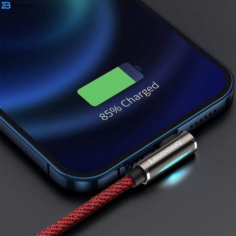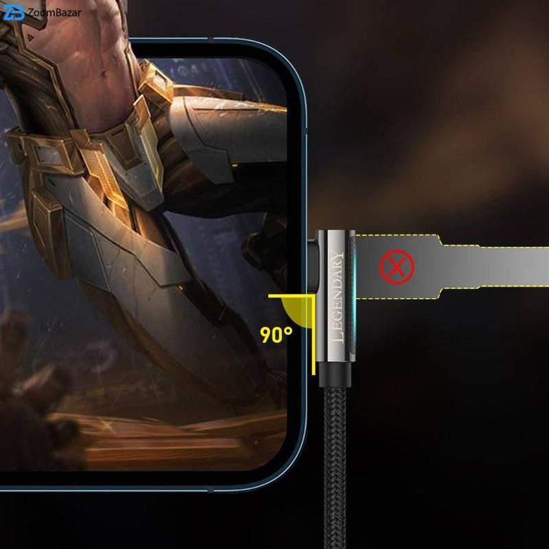 • سایر توضیحات کابل سری لایتنینگ خمیده (آیفونی)، طول کابل: 2 متر، شدت جریان خروجی: 2.4A، سرعت انتقال داده 480Mbps، روکش مقاوم در برابر پارگی و کشیدگی