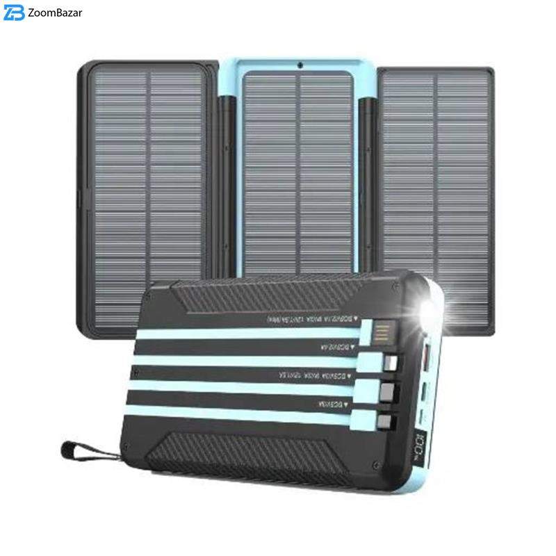 | مشخصات فنی | ورودی Type-c: حداکثر توان ۱۸ وات (۹ ولت/۲ آمپر – ۱۲ ولت/۱.۵ آمپر – ۵ ولت/۳ آمپر) ورودی Micro USB: حداکثر توان ۱۸ وات (۹ ولت/۲ آمپر – ۱۲ ولت/۱.۵ آمپر – ۵ ولت/۳ آمپر) خروجی درگاه Type-c: حداکثر توان ۲۰ وات (۹ ولت/۲.۲۲ آمپر) خروجی کابل متصل Micro USB: حداکثر توان ۱۵ وات (۵ ولت/۳ آمپر) خروجی کابل متصل لایتنینگ: حداکثر توان ۱۲ وات (۵ ولت/۲.۴ آمپر) کابل متصل تایپ سی: حداکثر توان ۱۸ وات خروجی درگاه USB: حداکثر ۱۸ وات توان صفحه خورشیدی: ۴.۸ وات |