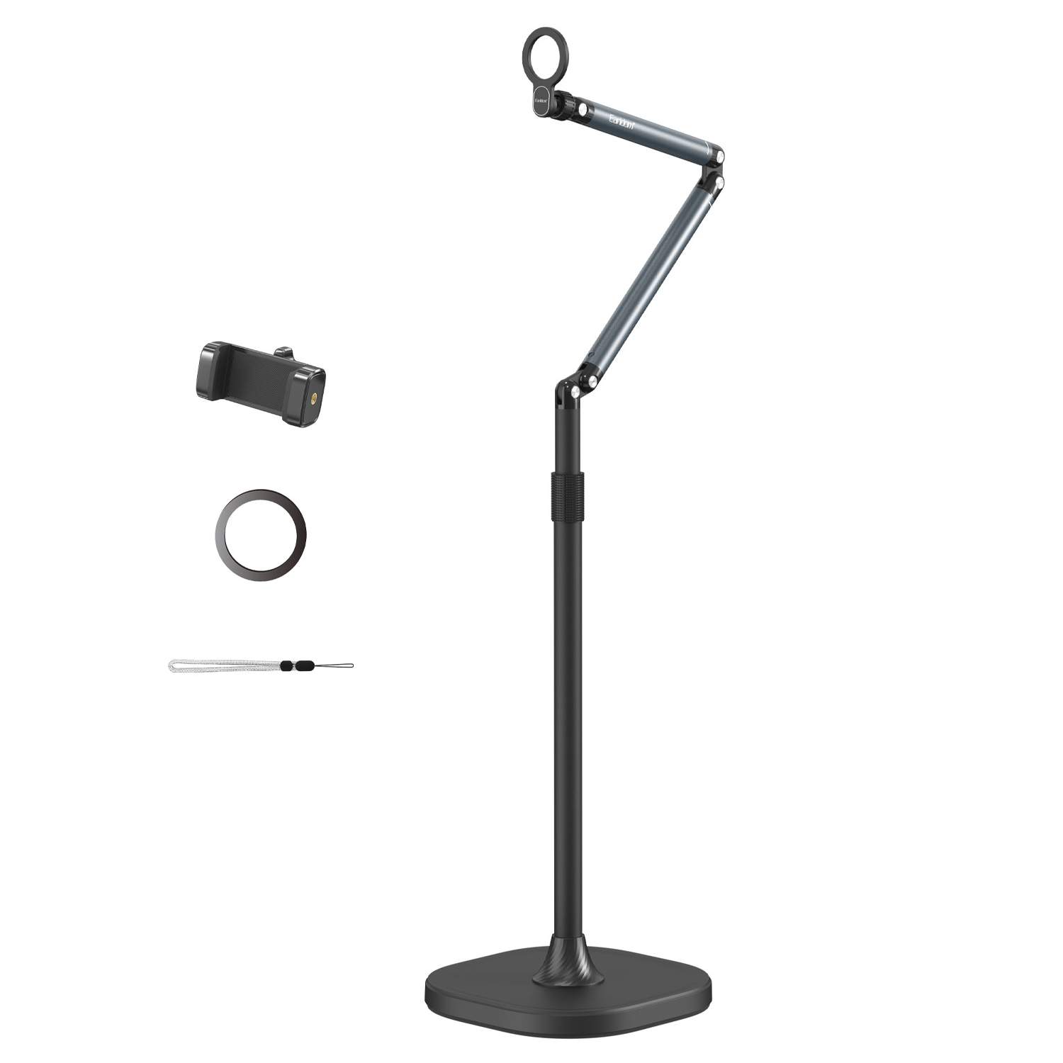 این پایه با ارتفاع قابل تنظیم از 1225 تا 1620 میلی‌متر و قابلیت اتصال مگنتی قوی، به شما این امکان را می‌دهد که گوشی یا تبلت خود را در زاویه و موقعیتی ایده‌آل قرار دهید. چه برای ضبط ویدیوهای ولاگ، چه برای کلاس‌های آنلاین، این پایه عملکرد بی‌نظیری را ارائه می‌دهد.