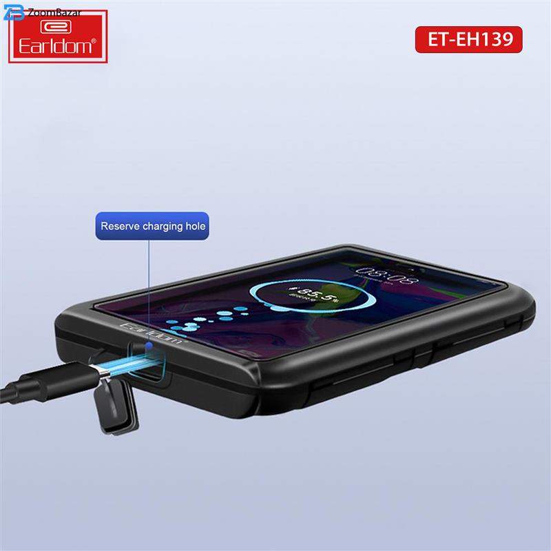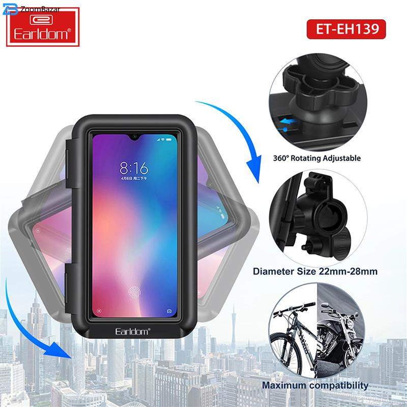یکی از وسایل مورد نیاز دو چرخه سواران و موتورسواران ، نگهدارنده ای برای گوشی موبایل روی فرمان است تا همیشه گوشی خود را دسترس داشته و برای مسیریابی و شنیدن موزیک از آن استفاده کنند. نگهدارنده ارلدام Motorcycle Bracket EH139 با طراحی عالی برای نگهداری مطمئن و امن گوشی ساخته شده است. این هولدر دارای یک جعبه محافظ درب دار قفل شونده از جنس ABS محکم و دارای دریچه با پوشش شفاف صفحه نمایش لمسی PVC با حساسیت بالا است که کار با تلفن همراه را آسان می کند. از مهمترین ویژگی های این هولدر این است که گوشی شما را در برابر آب ، گرد و غبار ، خاک ، شن و ماسه آب بندی می کند و عملکرد صفحه لمسی بسیار خوبی را فراهم می کند. همچنین یک دریچه برای عبور کابل شارژ زیر آن تعبیه شده است . روش نصب آن بسیار ساده است و با توجه به تجهیزاتی که روی فرمان وسیله خود دارید می توان آن در جاهای مختلف نصب کرد که ساده ترین روش نصب آن زیر آیه جانبی است که نیاز به هیچ ابزاری مانند پیچ گوشتی ندارد .