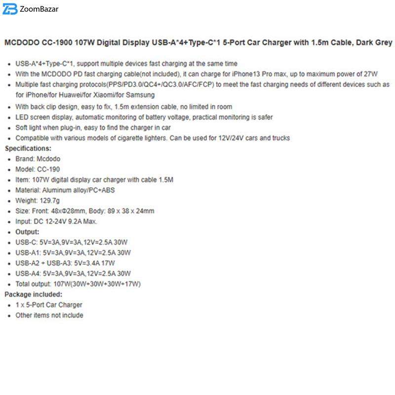 USB-Ax4+Type-Cx1، از شارژ سریع چند دستگاه به طور همزمان پشتیبانی می کند با کابل شارژ سریع MCDODO PD (شامل نمی …