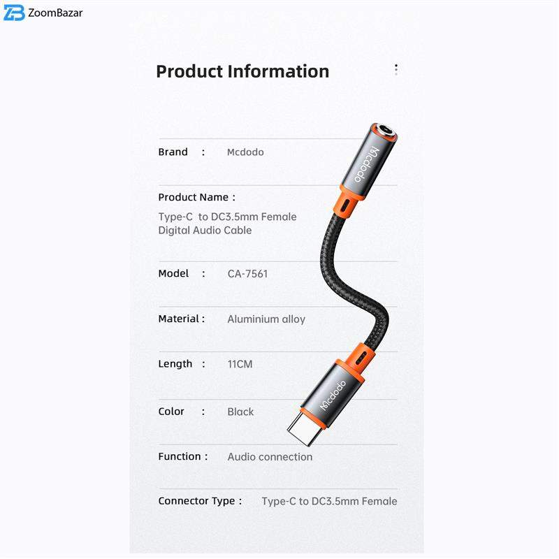 مبدل USB-C به جک 3.5 میلیمتری مک دودو مدل CA-7561