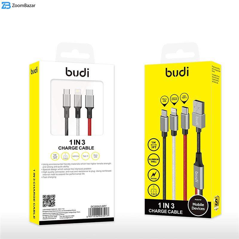 کابل تبدیل USB به لایتنینگ / MicroUSB / USB-C بودی مدل DC203A2 طول 1 متر