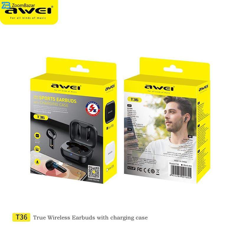 هدفون بی سیم T36 از کمپانی Awei با چیپ بلوتوث 5.0 اتصالی پایدار در اختیار شما می گذارد. IPX4 نیز باعث شده این هدفون ضد آب باشد و حین تعریق و یا بارش به مشکل نخورد . باتری ظرفیت بالای این هدفون با مصرف کمتر باتری به عمر آن میافزاید و هدفونتان را از شارژ طولانی و مداوم بی نیاز میکند . کیس این هدفون با 320mAh تنها 1.5 ساعت نیاز به شارژ کامل دارد و به شما 4_5 ساعت پخش مدوام میدهد. هر دو گوش این هدفون مجهز به چیپ Airoha بوده که به شما امکان استفاده جداگانه از هر گوش را میدهد همچنین با یک ضربه آرام روی هر هدفون به راحتی میتوانید پخش و بلندی صدا، پاسخ دادن به تماس ها و… را کنترل نمایید.