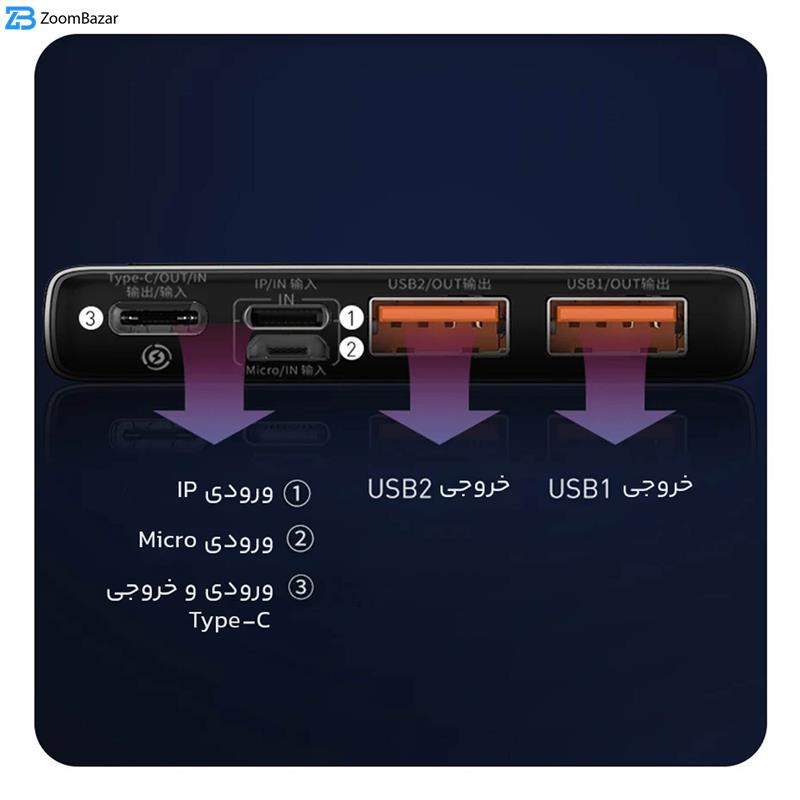 پاوربانک باسئوس مدل ADAMAN METAL DIGITAL DISPLAY ظرفیت 10000 میلی آمپر ساعت