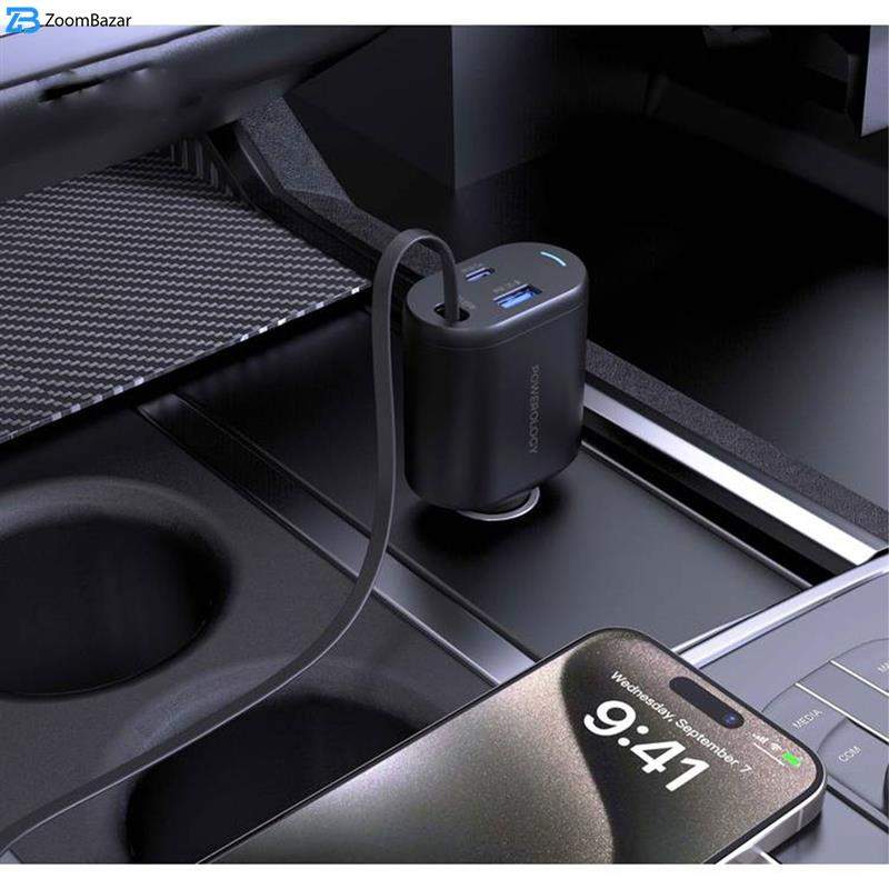 این شارژر با اتصال به پورت فندکی خودرو و استفاده از ورودی 12 یا 24 ولتی، 3 عدد خروجی همزمان فوق سریع USB-A ،USB-C و کابل Type C با توان مجموعا 115 وات را در اختیار شما قرار میدهد.