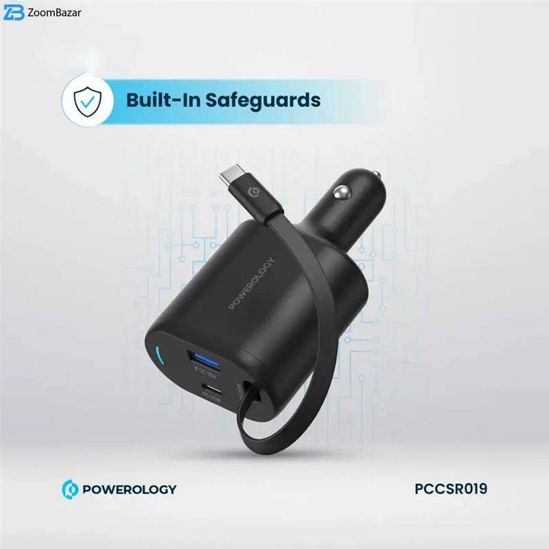 شارژر فندکی 115W پاورولوجی مدل PCCSR019، محصولی بسیار کاربردی و با کیفیت از برند POWEROLOGY میباشد. این محصول با بدنه ای از جنس PC + ABS با مقاومت بالا طراحی شده است که می تواند به صورت همزمان 3 خروجی USB-A ،USB-C و کابل Type C با مجموع توان 115 واتی را در اختیار کاربر قرار دهد که قابلیت شارژ طیف وسیعی از گجت ها را نیز فراهم می آورد و محافظ های داخلی تعبیه شده، دستگاه های شما را در برابر آسیب های احتمالی محافظت میکند.