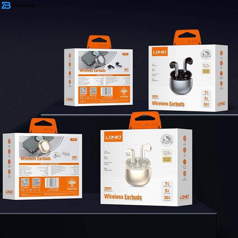 هدفون بی سیم LDNIO T10 هدست گیمینگ True Tooth Blue با تأخیر کم موسیقی کنترل لمسی استریو Earbuds 5.3 TWS Mini Earphone