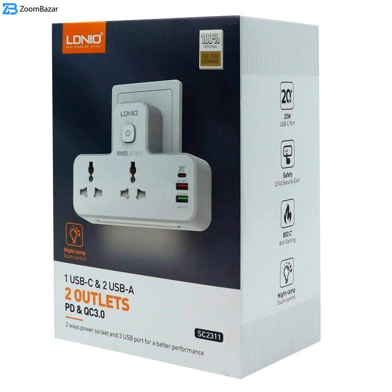 کمپانی الدینیو محصول چند کاره SC2311 را طراحی کرده که با پشتیبانی از قابلیت استفاده به عنوان چند راهی، شارژر و چراع خواب روانه بازار شده است. این دستگاه از بدنه ای به جنس پلی کربنات ساخته شده که استحکام کافی را در برابر ضربه، فشار و حرارت ارائه می دهد. دو عدد پریز بر روی بدنه تعبیه شده که ضمن نیاز به استفاده از مبدل با انواع دو شاخه ها سازگاری دارد و براساس ولتاژ ورودی 100 تا 250 ولت از اتصال دستگاه های مختلف الکتریکی پشتیبانی می کند. این پریزها همچنین مجهز به محافظ کودک نیز می باشند و کلید فیزیکی روشن و خاموش جهت قطع جریان برق نیز بر روی بدنه قرار دارد. یک لامپ LED برای این چندراهی برق در نظر گرفته شده که فقط با یک لمس فعال و با نور ملایم سفید رنگ خود به عنوان چراغ خواب و یا روشنایی در محیط های تاریک قابل استفاده خواهد بود. بر روی این دستگاه دو پورت USB و یک درگاه Type-C قرار دارد که برای اتصال و شارژ انواع گوشی موبایل، تبلت و … مناسب می باشند و امکان شارژ همزمان و ایمن چند دستگاه را ارائه می دهند. پورت USB 1 از فناوری شارژ سریع نسخه QC3.0 پشتیبانی می کند و با جریان عبوری متغیر 3 آمپر در ولتاژ 5 ولت، 2 آمپر در ولتاژ 9 ولت و 1٫5 آمپر در ولتاژ 12 ولت انواع گجت ها را با سرعتی مطلوب شارژ خواهد کرد. پورت دیگر USB از فناوری Auto-ID بهره برده و با حداکثر شدت جریان 2٫4 آمپر در ولتاژ 5 ولت عملیات شارژ رسانی را با سرعت و ایمنی مناسب انجام می دهد. شدت جریان خروجی پورت تایپ سی نیز به صورت متغیر برابر با 3 آمپر در 5 ولت، 2٫22 آمپر در 9 ولت و 1٫67 آمپر در 12 ولت می باشد که با توان خروجی 20 وات قادر به شارژ دستگاه های سازگار است. LDNIO SC2311 به فناوری Power Delivery و چیپست هوشمند مجهز شده که با تشخیص و متناسب سازی جریان و ولتاژ دستگاه متصل، از ایجاد آسیب باتری در برابر نوسانات ولتاژی، بار اضافی جریان و برق، اتصالات کوتاه و دمای بیش از حد جلوگیری خواهد کرد.
