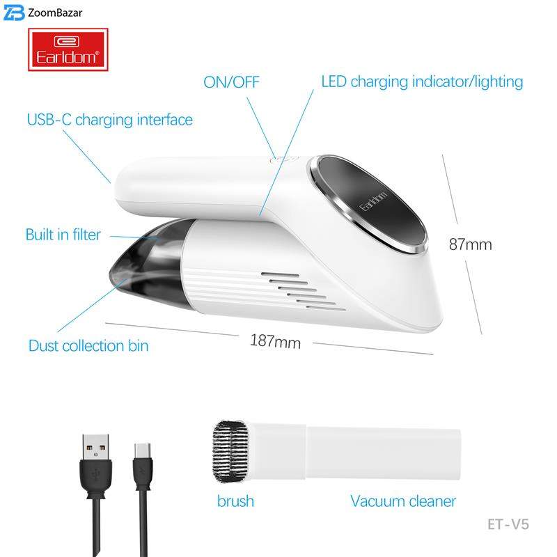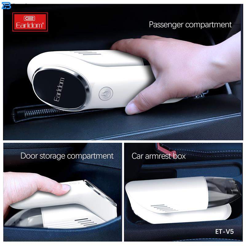 جاروی بی سیم کوچک ET-V5 با طراحی زیبا و منحصر به فرد از جنس ABS، سیلیکون و پلی کربنات نسوز با ابعاد 187*87*42 میلی متر میتواند یکی از ابزارهای همیشگی خودرو یا منزل شما باشد. این جارو با ابعاد کوچک و قابلیت تاشو 180 درجه به شما این امکان را میدهد تا به راحتی آن را در خودرو جای دهید و آن را به راحتی حمل کنید. این جارو با سرعت بالا و مکش 4500 پاسکال است؛ این میزان قدرت موتور باعث میشود تا گرد و غباری درون ماشین شما باقی نماند.ظرفیت مخزن آن 120 میلی لیتر است. این یک جاروی چند منظوره است. شما هم میتوانید برای تمیز کردن خودرو از آن استفاده کنید هم خانه؛ این جارو از یک نازل ساخته شده است که برای تمیز کردن گوشه ها بسیار مناسب است. شما به راحتی با این جارو میتوانید کف ماشین، روی داشبورد، درزهای درچه کولر، ریل های پنجره خانه و گوشه و درزهای کاناپه را تمیز کنید. جاروی خودروی ارلدام به راحتی تخلیه میشود و نیاز به دست زدن به منبع آشغال ندارد؛ فقط کافی ست درب آن باز کنید و سطل زباله را به راحتی تخلیه کنید.