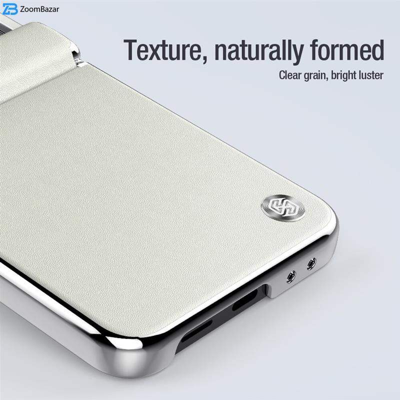 کاور چرمی CamShield Flip modern که نوعی زیبایی بصری ساده و مجلل را ارائه می دهد، قطعا یک طراحی کلاسیک است. این پوسته ترکیبی از سخت و نرم را با اتصال لبههای TPU و صفحه پشتی رایانه شخصی برای جلوگیری از افتادن و خراشیدگی به کار میگیرد، و لایهای از چرم بافتدار که صفحه پشتی رایانه شخصی را میپوشاند دارای یک لمس ظریف و ابریشمی، ضد اثر انگشت و جلوگیری از آلودگی روغن است. پوشش کشویی لنز ثبت شده نه تنها از خراشیدن لنز جلوگیری می کند، بلکه از حریم خصوصی تلفن شما در برابر افشای آن محافظت می کند. همچنین نوارهای ضد لغزش با شکستگی براق براق لیزری در دو طرف اضافه شده است تا عملکرد ضد سقوط را ارتقا دهد.متریال ترکیبی از سخت و نرم حاشیههای نرم TPU و قاب پشتی سخت و با ترکیب چرم ظریف، تلفن همراه شمارا در برابر ضربدیدگی و خط و خش محافظت میکند. همچنین در قسمت کشویی محافظ لنز دوربین از آلیاژ خیره کنندهای استفاده شده است. پوشش لنز از آلیاژ آلومینیوم سخت، فناوری بافت CD که روی سطح آن استفاده شده است، و دارای بافت براق بوده و نور را منعکس میکند.در طراحی و ساخت کیف محافظ چرمی CamShield Flip modern نیلکین از تلفن همراه واقعی استفاده شده است و متناسب با تلفن همراه شماست، همچنین ضخامت مناسب روی محافظت از تلفن و شارژ بیسیم تاثیری نمیگذارد.