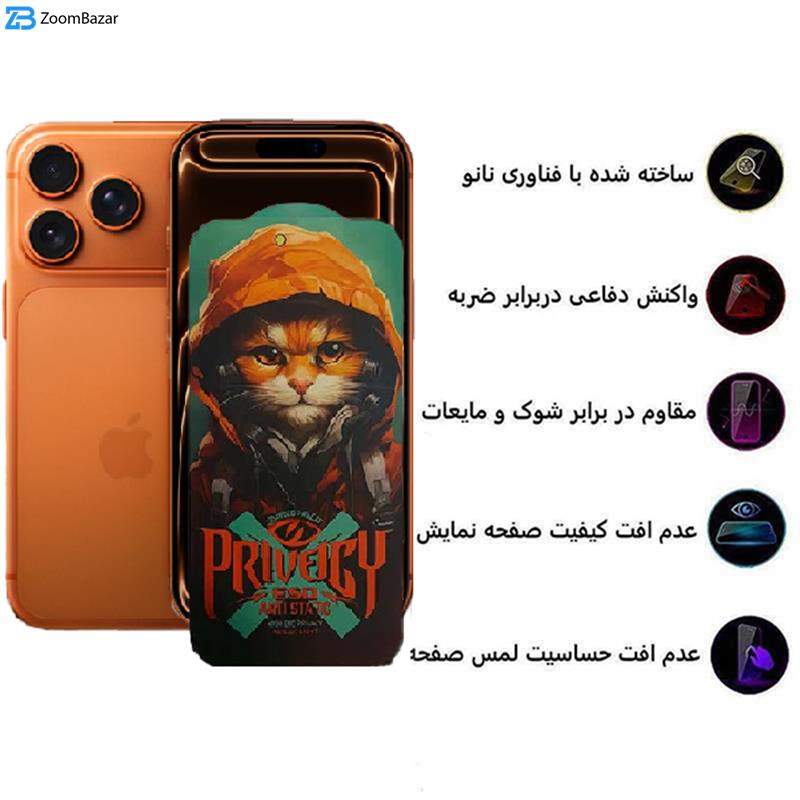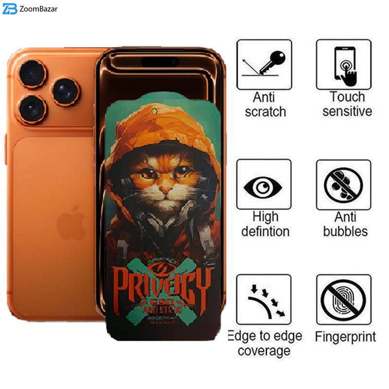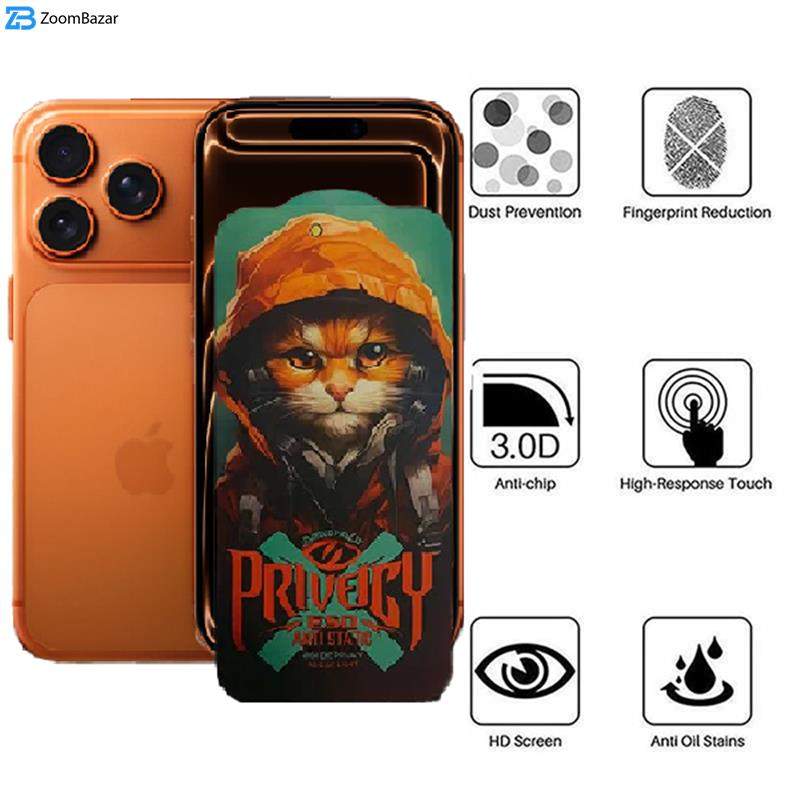 محافظ صفحه نمایش حریم شخصی اپیکوی مدل Privacy Hoodie Cat مناسب برای گوشی موبایل اپل iPhone 17 Pro / 17 / 16 Pro