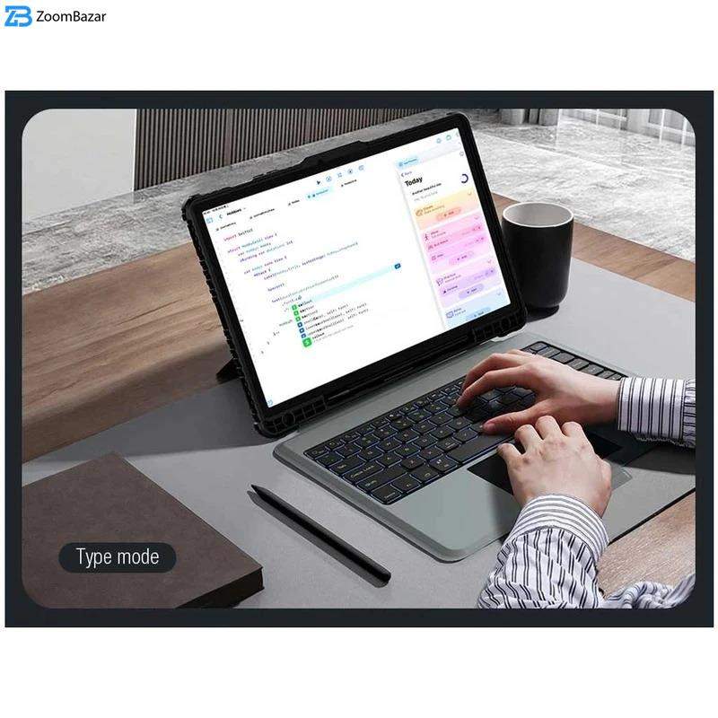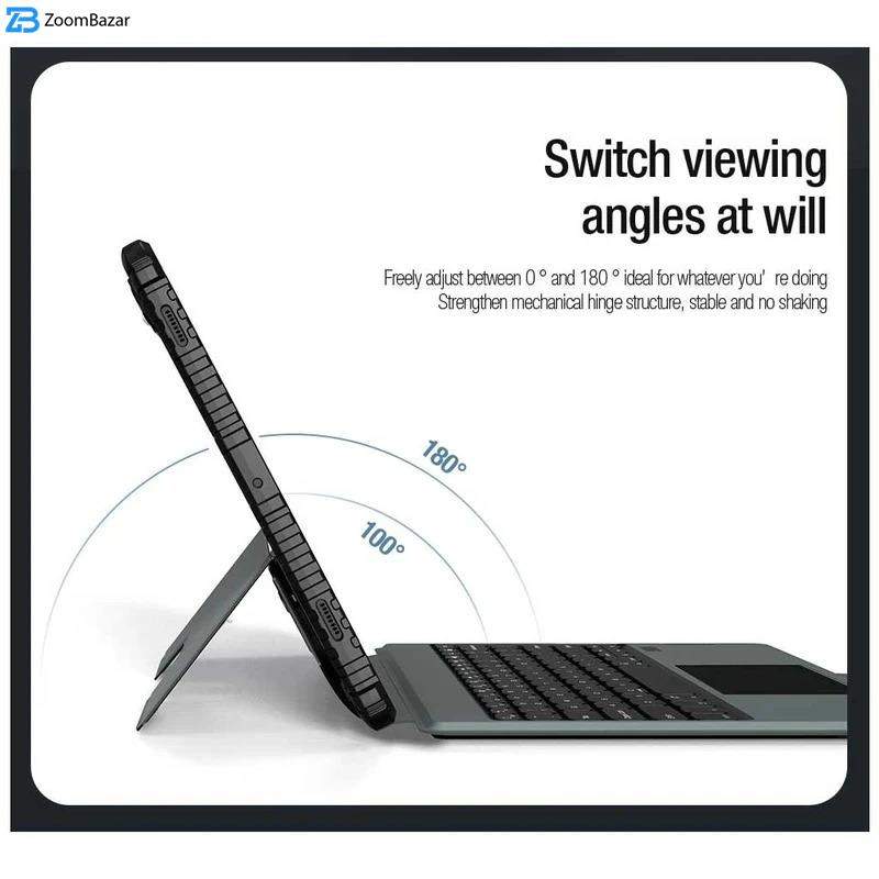 • ویژگی‌های کیف و کاور قابلیت تبدیل شدن به استند، لبه های برجسته برای محافظت صفحه نمایش، لبه های برجسته برای محافظت دوربین، دارای کیبورد