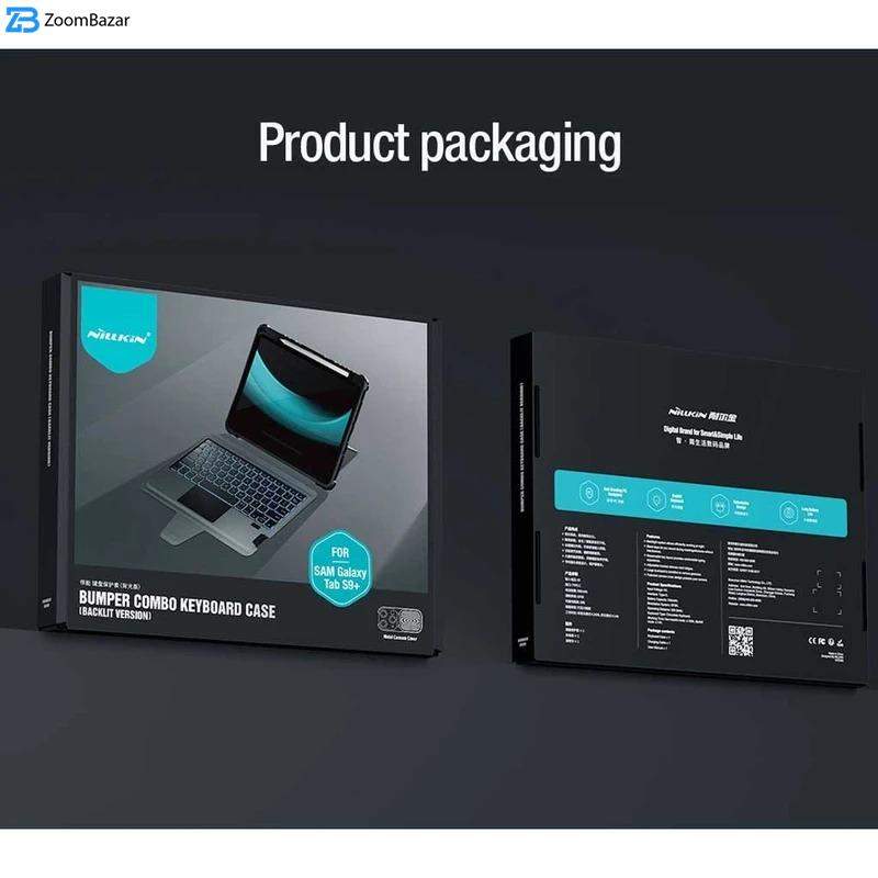 کیف کلاسوری کیبورددار نیلکین مدل Bumper Combo Backlit Keyboard مناسب برای تبلت سامسونگ Galaxy Tab S10 Plus/S9 Plus