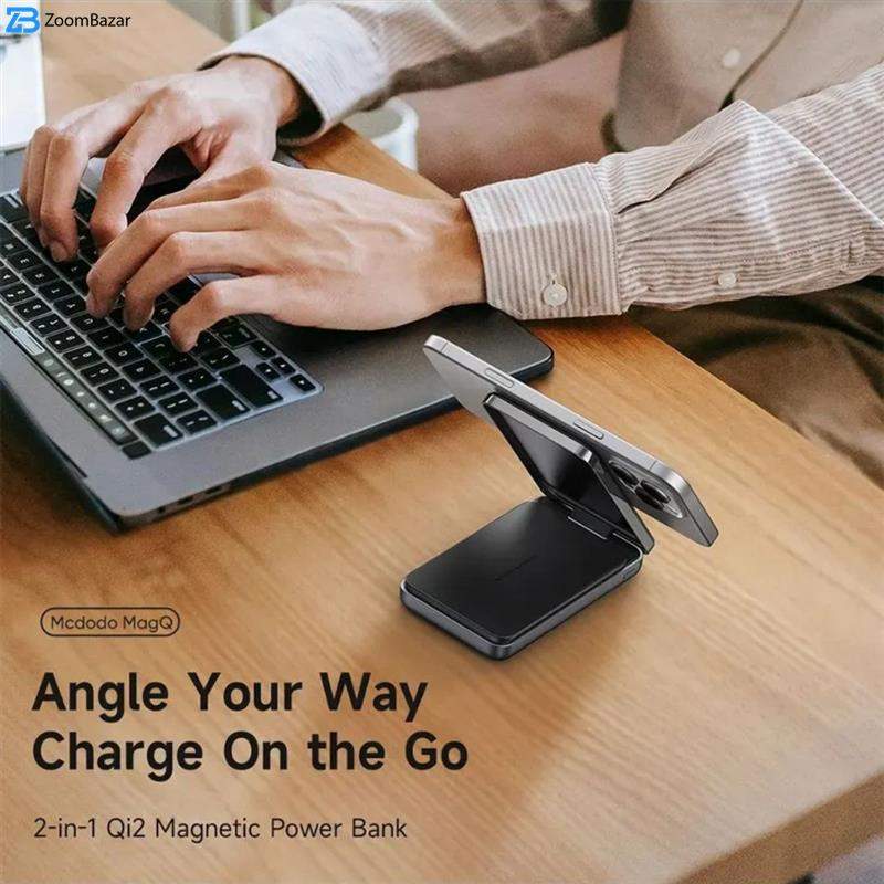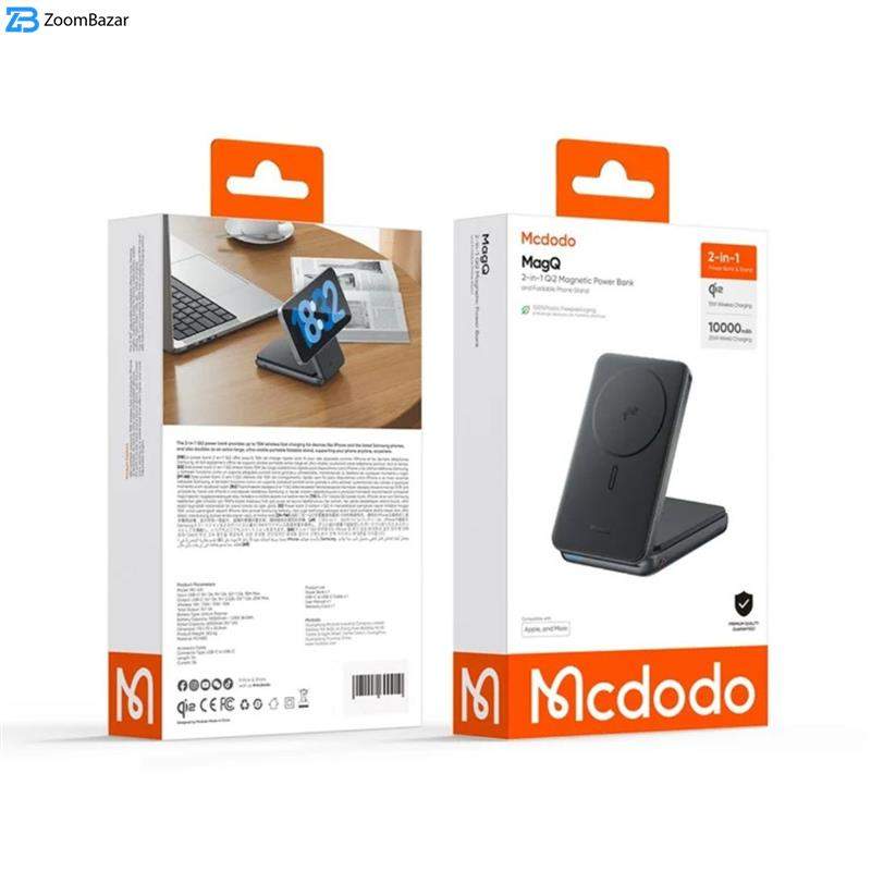 پاوربانک Mcdodo MC-631 یک دستگاه هوشمند و کاربردی است که ظرفیت ۱۰۰۰۰mAh (با ظرفیت اسمی قابل استفاده حدود ۶۰۰۰mAh) را در قالبی جمعوجور و زیبا ارائه میدهد و با ابعاد ۱۱۵×۷۰×۲۰ میلیمتر و وزن ۲۶۳ گرم بهراحتی در کیف یا جیب جای میگیرد. این پاوربانک از تکنولوژی Qi2 مغناطیسی بهرهمند است و توانایی ارائه شارژ بیسیم تا ۱۵ وات را دارد که برای گوشیهای سری iPhone 12 به بعد کاملاً ایدهآل است. در کنارش، درگاه USB-C نیز با پشتیبانی از شارژ سریع تا ۲۰ وات (ولتاژ و جریان 5V⎓3A، 9V⎓2.22A، 12V⎓1.5A) امکان شارژ سریع و ایمن را فراهم میسازد.