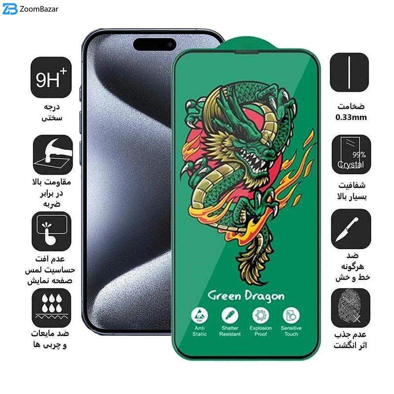 محافظ صفحه نمایش اپیکوی مدل Green Dragon ExplosionProof مناسب برای گوشی موبایل اپل iPhone 16 /15 / 14 Pro