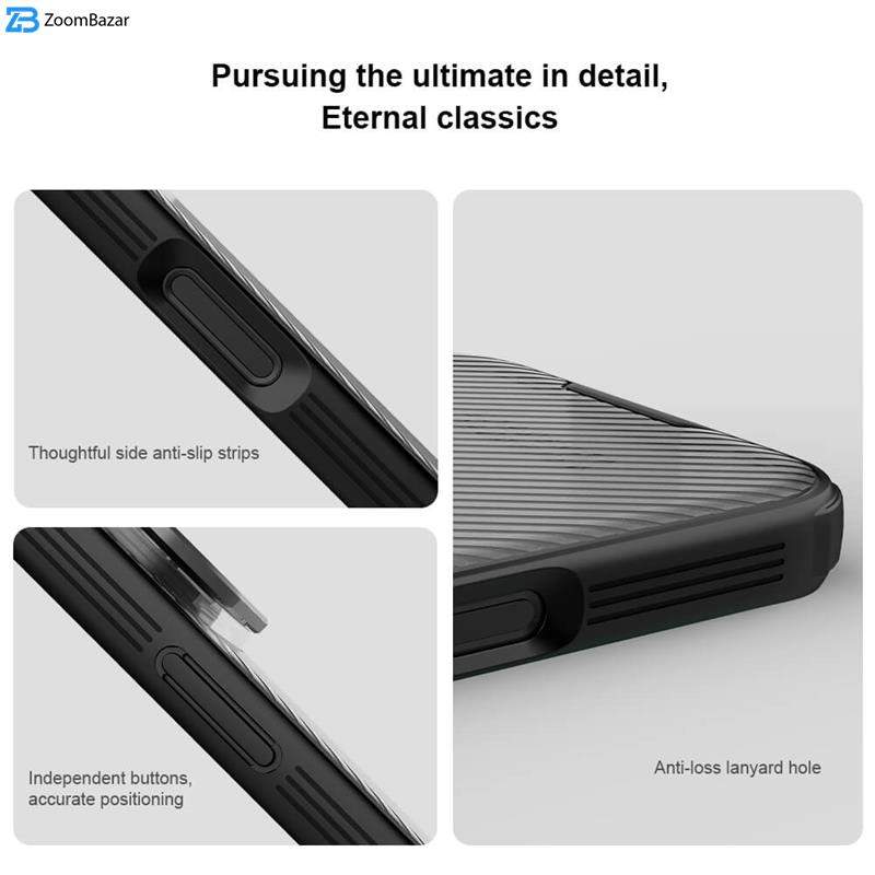 اگر دوست دارید استایلی شیک و جذاب داشته باشید و از گوشیتان محافظ کنید.کاور نیلکین مدل Camshield Prop Magnetic Clear Transparent Lens Guard گزینه ایدهآلی است.این قاب استایلی خاص دارد چرا که بدنه نیمه شفاف آن تلفیقی از زیبایی کاور و بدنه گوشی را به ارمغان میاورد . کیفیت و کارایی بسیار بالایی هم دارد.کاور نیلکین مدل Camshield Prop Magnetic Clear ظریف و خوشدست است.باتکنولوژیهای مدرن طراحی شده است و ظرافت های زیادی دارد.نکته بسیار جالب این کاور محافظ ویژه از قسمت لنز ها به صورت لبه فلزی و داخل شیشه ای است که طارحی بی نظیری است . از دستتان نمیلغزد .این قاب نسبت به سایر قابهای سخت از نظر امنیت و امکانات و همچنین دوام در سطح بسیار بالاتری قرار دارد. Camshield Prop Magnetic Clear Transparent Lens Guard بصورت Magnetic یا مغناطیسی طراحی شده است به این معنی که میتوانید بواسطه آن به راحتی گوشی همراه خود را حتی در هنگام داشتن قاب بر روی آن به صورت بی سیم شارژ کنید ویا از اکسسوری های مختلفMagneticاستفاده کنید.کاور نیلکین مدل Camshield Prop Magnetic Clear Transparent Lens Guard علاوه بر امر محافظت از گوشی و زیبایی،دوربین گوشی رانیز بخوبی پوشش میدهد.کاور نیلکین مدل از جنسPCسخت بوده وبخش های اطراف آن دارای خط های موربی می باشد که برای جلوگیری از لغزیدن گوشی در دستان شما طراحی شده است.همچنین قسمت پشتی قاب نیز از همین طرح پیروی می کند.امامزیت اصلی این قاب محافظت کامل از دوربین گوشی است.در قسمت پشت کاور نیلکین مدل Camshield Prop Magnetic Clear Transparent Lens Guard یک بخش متحرک وجود دارد که مانند یک درپوش لولایی روی دوربین گوشی رامی پوشاند.این محافظ،به صورت بسیار محکم وبه شکل فلزی با کیفیت باطرح زیبای نیلکین در قسمت بیرونی کاور طراحی و ساخته شده است.در صورت تمایل می توانید این درپوش را کنار زده و از دوربین خود استفاده کنید.از این درپوش می توان به عنوان استند استفاده کرد و گوشی را روی سطح قرار داد.این قاب کاملا متناسب با ابعاد گوشی طراحی شده است.تمام قسمت پشت و لبه های اطراف را به خوبی پوشش می دهد و قسمت پورت و اسپیکرها را بخوبی برش داده است. پشت این قاب به طور نیمه شفاف و کدر طراحی و ساخته شده تا ترکیب رنگ خود گوشی و این قاب ، زیبایی خاصی رو برای شما به ارمغان می آورد .